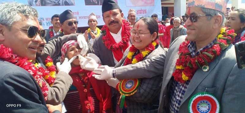 ‘ज्येष्ठ नागरिक दन्त उपहार कार्यक्रम तथा नोबेल कोरोना भाइरस सम्बन्धी जनचेतना मुलक कार्यक्रम’को ब्यानर नेकपाका नेता र मन्त्रीले दाँत ढकेलेर उदघाटन गरेका हुन् ।