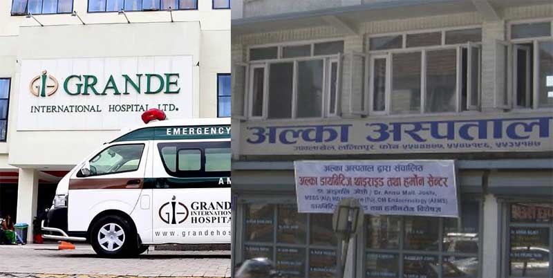 आफूलाई फाइभ स्टार अस्पतालको रुपमा दाबी गर्दै आएको काठमाडौंको धापासीस्थित ग्राण्डी अस्पताल र ललितपुरको पुल्चोकमा रहेको अल्का अस्पतालले कोरोना भाइरसको शंकाष्पद बिरामीलाई भर्ना लिन अस्वीकार गरेको खुलेको छ ।