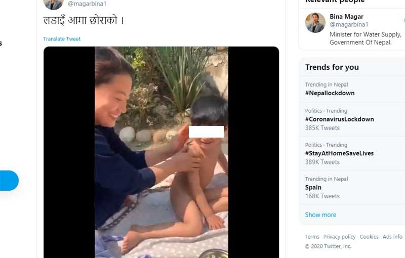 ‘लक डाउन’का बेला मन्त्री बिना मगरले सार्वजनिक गरिन् छोराको ‘नाङ्गो’ भिडियो