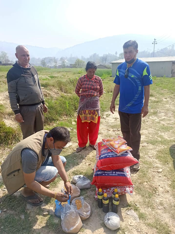 दैनिक ज्याला मजदुरी गर्ने श्रमजीवी वर्ग, अपाङ्ग, सुत्केरी र अति बिपन्न परिवारलाई खाद्यान्न सहायता गरिएको भक्तपुर तरुण दलका सदस्य राजु पुरीले जानकारी दिए ।