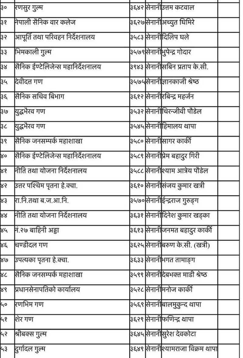 सेनाद्वारा ९० प्रमुख सेनानी र सेनानीहरूको बढुवा (नाम)