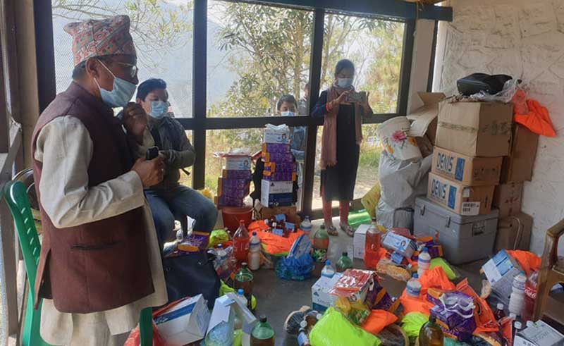 स्वास्थ्यकर्मीहरूलाई अध्यक्ष राईले स्याब्लोन झोल लगायत थुप्रै आवश्यक स्वास्थ्य सामग्रीहरू प्रदान गरेका छन् ।