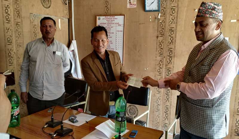 कांग्रेस मकवानपुरका सभापति एवम् क्षेत्र नम्बर २ ‘ख’का सांसद बानियाँले गाउँपालिकाका अध्यक्षलाई दुई लाखको चेक हस्तान्तरण गरेका छन् ।