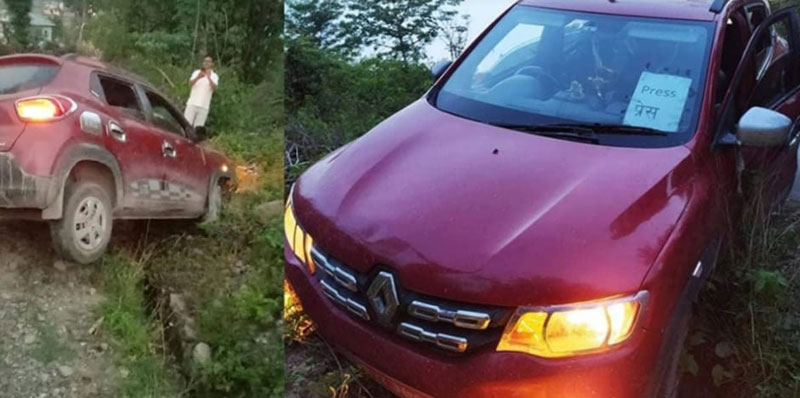लकडाउनमा रक्सीले मात्तिएका बस सञ्चालकको कारमा ‘प्रेस’, दुर्घटना भएपछि खुल्यो भेद