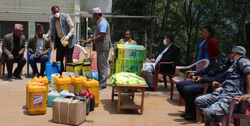 जिल्ला विपत व्यवस्थापन समितिका संयोजक समेत रहेका प्रमुख जिल्ला अधिकारी आचार्यमार्फत खतिवडाले एकद्वार नीतिअनुसार ती स्वास्थ्य सामग्री हस्तान्तरण गरेका छन् ।