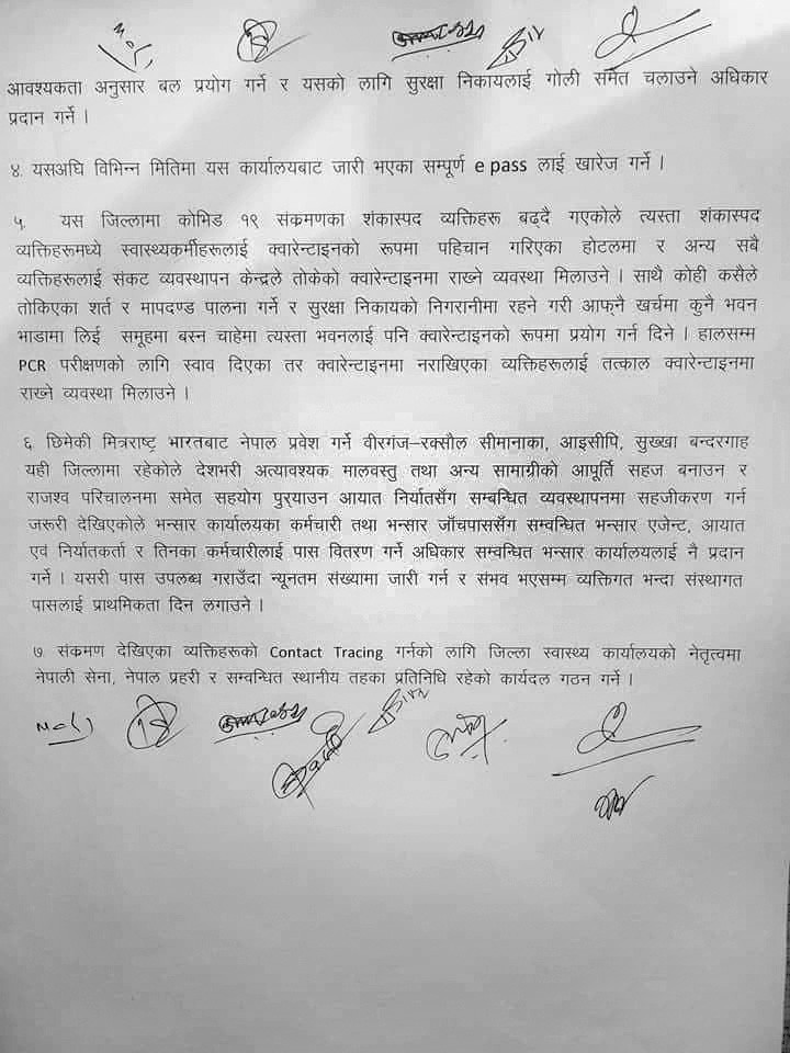 सुरक्षाकर्मीलाई संक्रमित भागेमा नियन्त्रण लिन आवश्यकता अनुसार बल प्रयोग गर्ने तथा गोली समेत चलाउन पाउने अधिकार दिने निर्णय गरेको छ ।