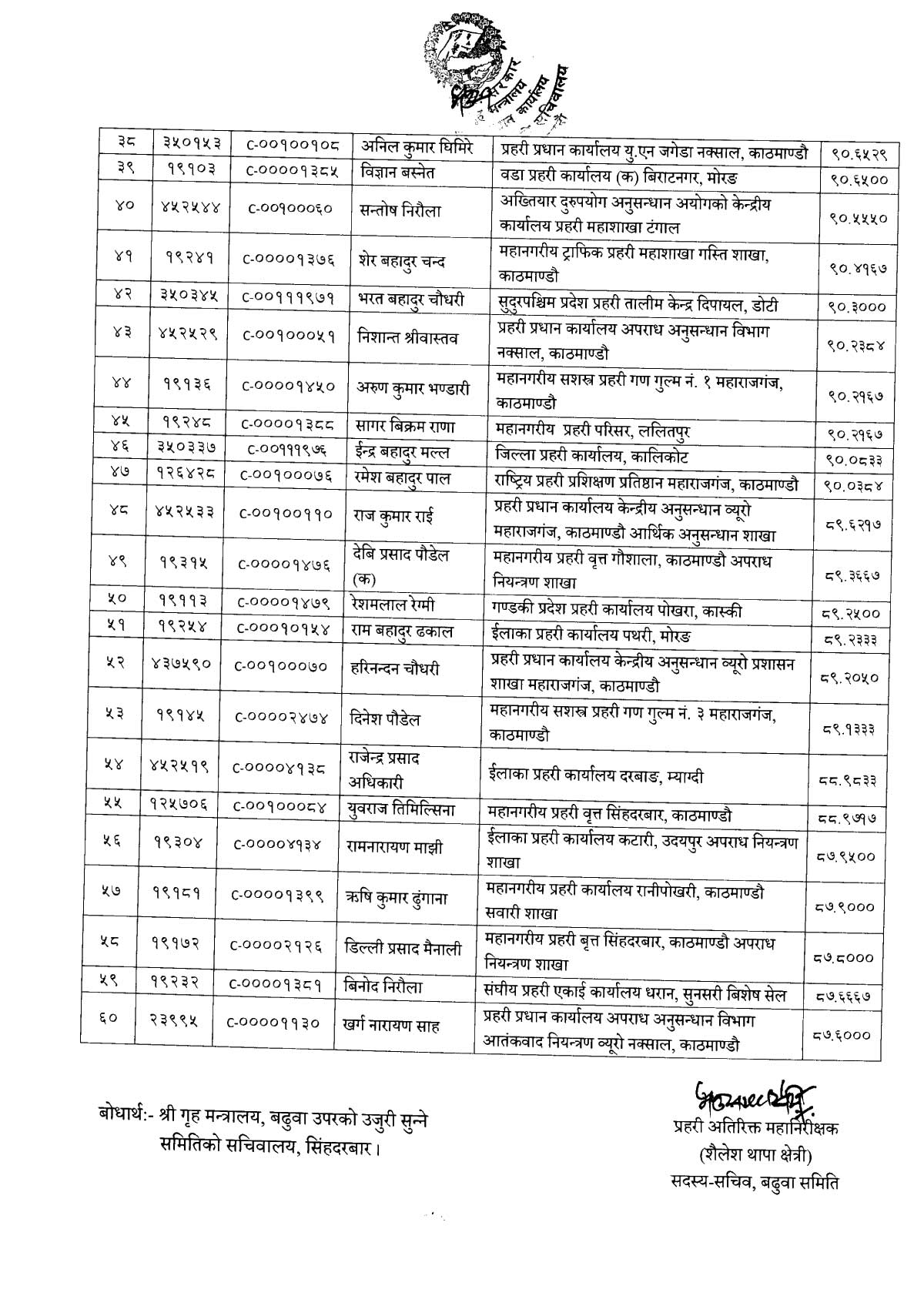जेठ १३ गतेको गह मन्त्रालय सचिवस्तरको निर्णयबाट प्रहरी निरीक्षकबाट ६० जना प्रहरी नायव उपरीक्षक पदमा पदोन्नति भएका थिए ।