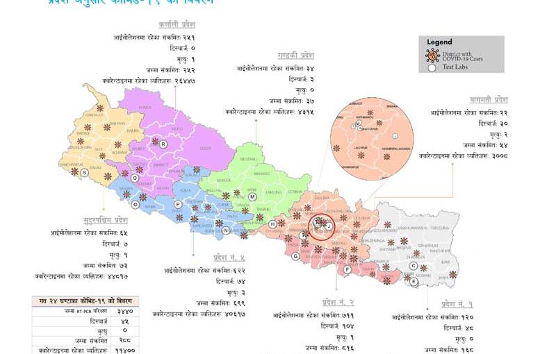 स्वास्थ्य तथा जनसंख्या मन्त्रालयमा मंगलबार आयोजित नियमित पत्रकार सम्मेलनमा प्रवक्ता डा.विकास देवकोटाले २८८ जनामा कोरोना भाइरसको संक्रमण देखिएको बताए । यीमध्ये २७० जना पुरुष र १८ जना महिला रहेका छन् ।