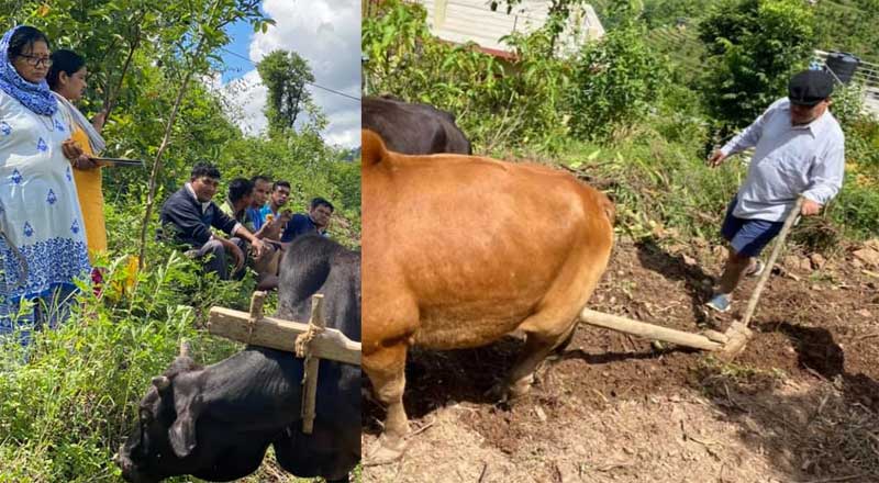 महराले हलो जोत्दै गर्दा उनकी पत्नी छोरा, आफन्त र सुरक्षा अंग (पीएसओ)ले नजिकै डिलमा बसेर हेरेको तस्बिर र भिडियोमा देखिन्छ ।
