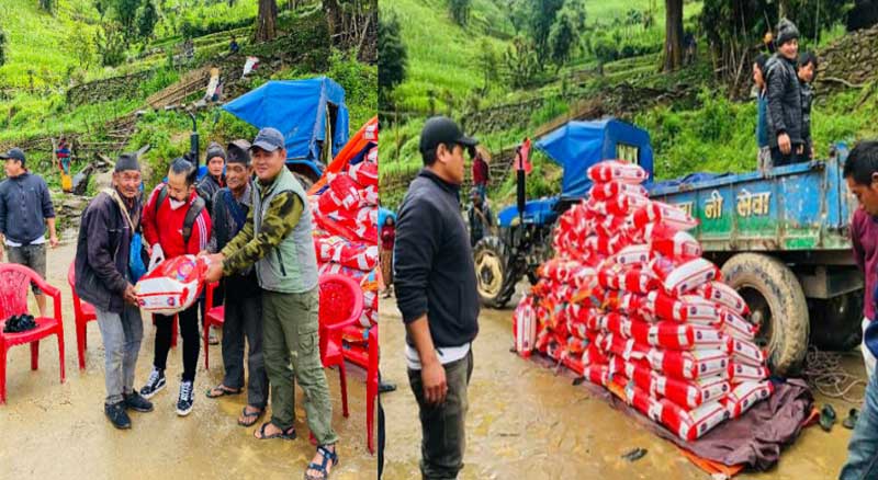 तरुण दलले क्व्होलासोथार गाउँपालिका वडा नम्बर ५ सिङ्दिका १०० घर परिवारलाई राहत बितरण गरेको हो ।