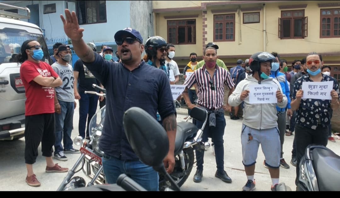 वडा कार्यालय अगाडि जम्मा भएका तरुणहरूले भ्रष्टाचारीलाई कारबाहीको माग गरेका छन् । वडाध्यक्षको दवावमा पक्राउ परेका वृद्ध महिलाका दुई जना आफन्त सुमन लिम्बु र सुजन गुरुङलाई रिहाइ गर्न पनि माग गरेका छन् ।