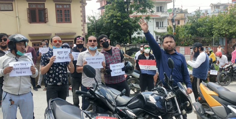 कम्युनिस्टहरूको भ्रष्टाचारविरुद्ध काठमाडौंमा तरुण दलद्वारा प्रदर्शन