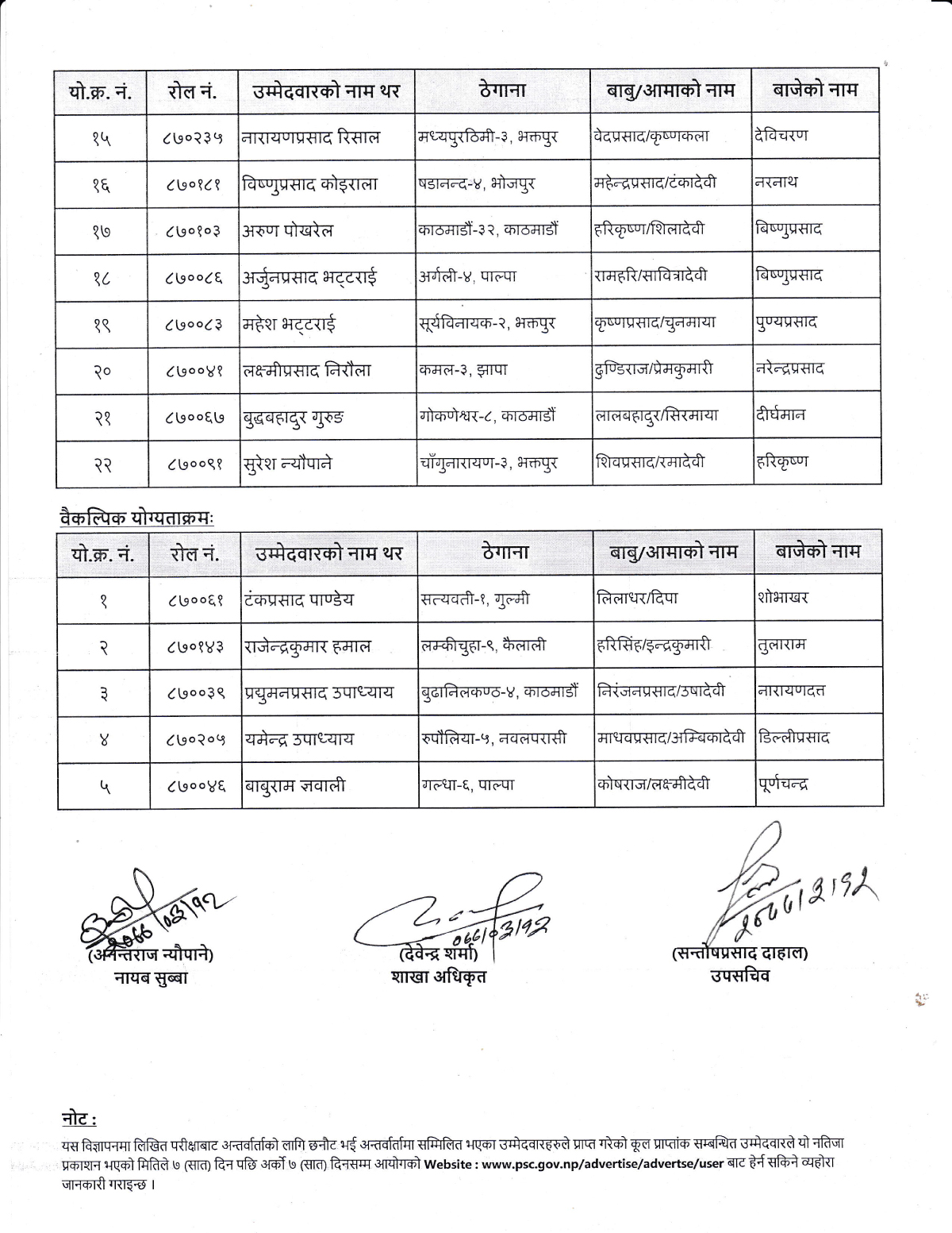 अन्तर्वार्ता असार २ गतेदेखि १२ गतेसम्म भएको थियो । आयोगले पाँच जनालाई वैकल्पिक योग्यतामा राखेको जनाएको छ ।