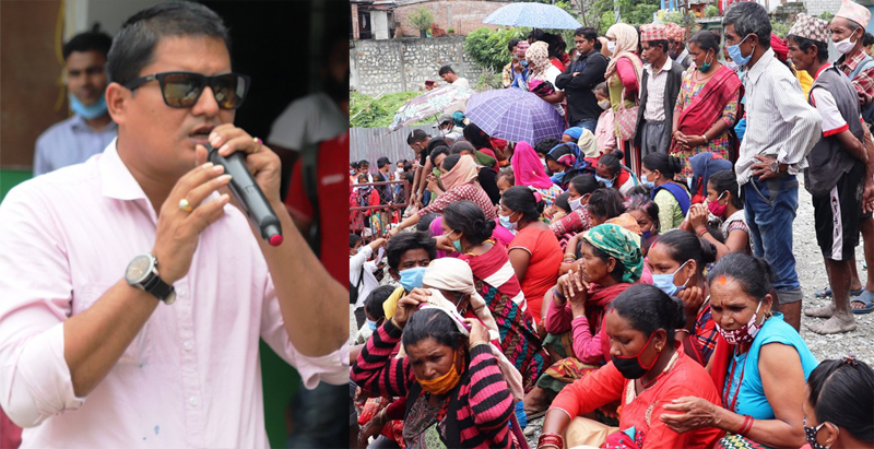 उनले ठूलो ट्रकमा खाद्यान्न सामग्रीहरू लिएर गाउँ आइपुगको छन् । कांग्रेस नेता मल्लले जलजलाका ८ सय परिवारलाई खाद्यान्न वितण गर्ने जनाएका छन् ।