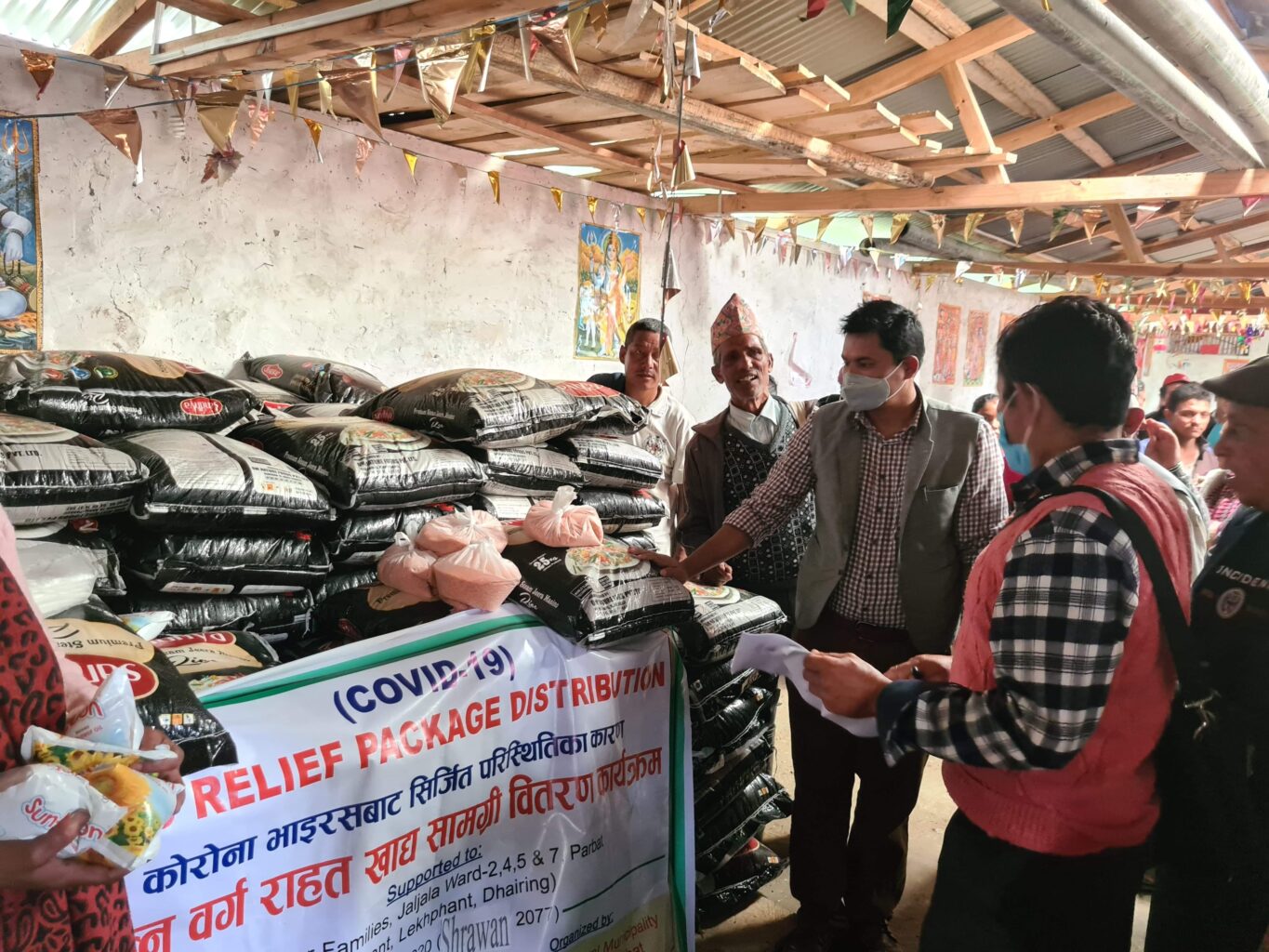 यसअघि, अध्यक्ष मल्लले दातामार्फत उपलब्ध खाद्यान्नहरू विभिन्न स्थानमा वितरण पनि गरेका छन् ।