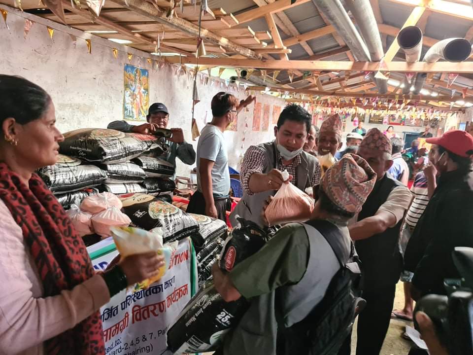 दाताको सहयोगमा उपलब्ध खाद्यान्न शुक्रबार जलजला गाउँपालिकाको वडा नम्बर ५, लेकफाँटमा वितरण गरेका हुन् ।