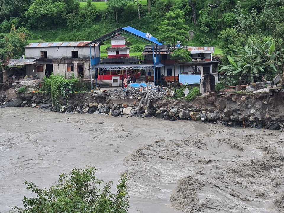 बाढीले कटान गरेर मन्दिरको गौशाला, धर्मशाला र शालीग्राम शिलाको स्तम्भ समेत बगाएको वडा नम्बर २ का वडाअध्यक्ष गोबिन्द खत्रीले जानकारी दिएका छन् ।