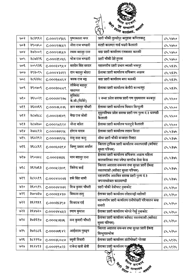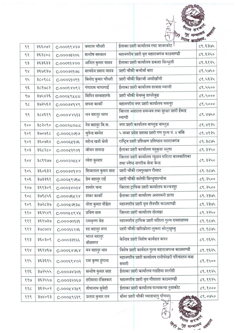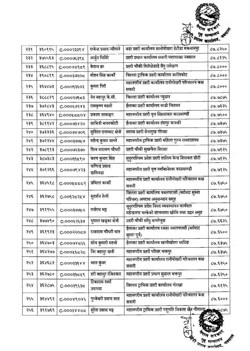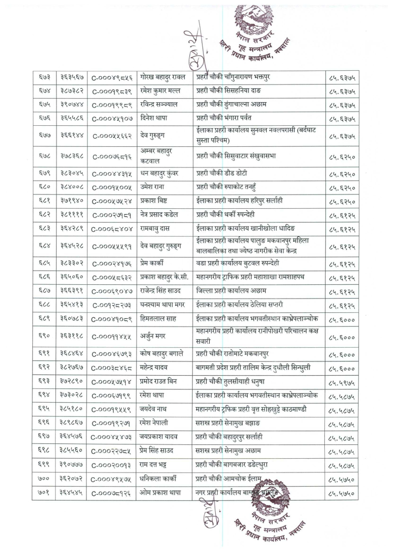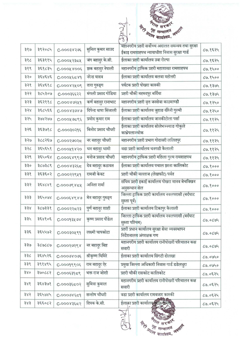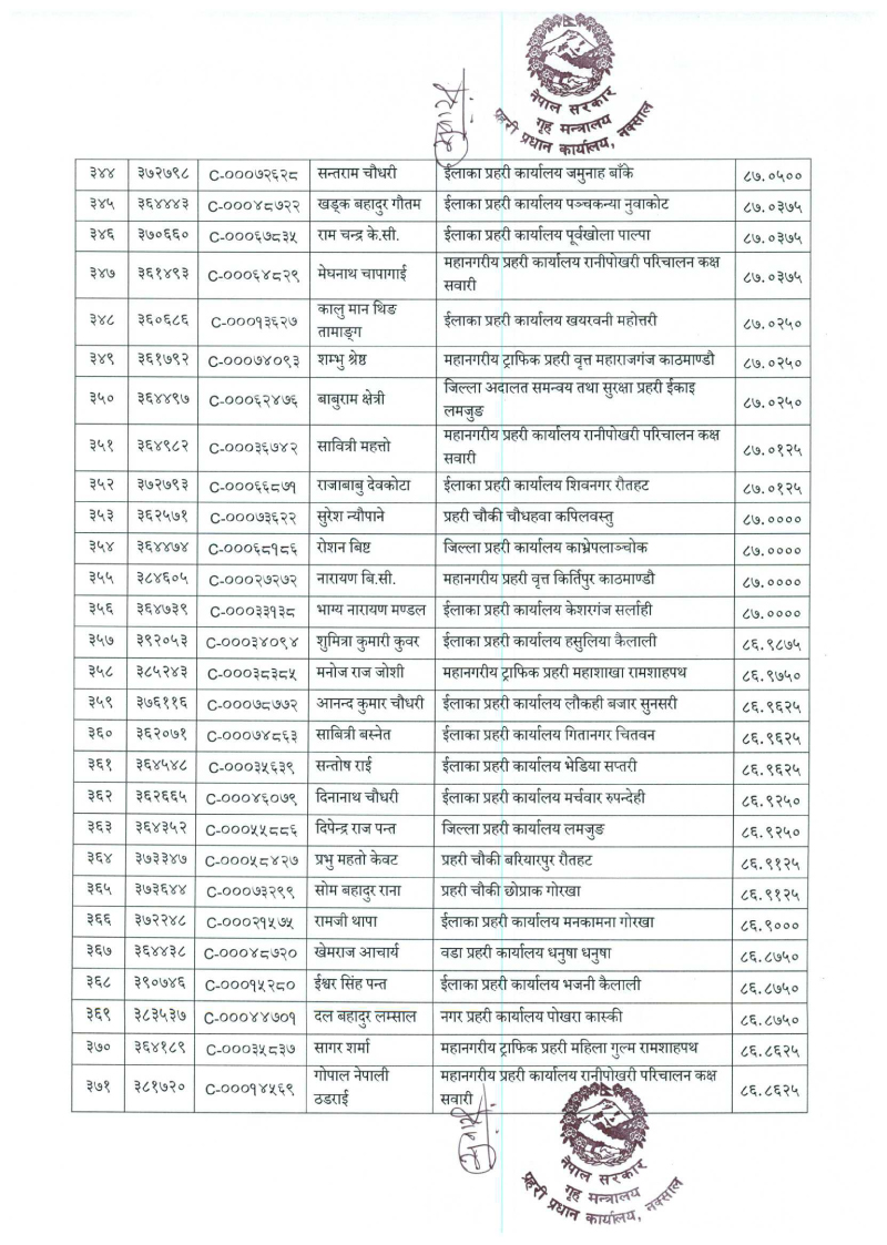 ७९६ प्रहरी जवान हवल्दारमा बढुवा (नाम)