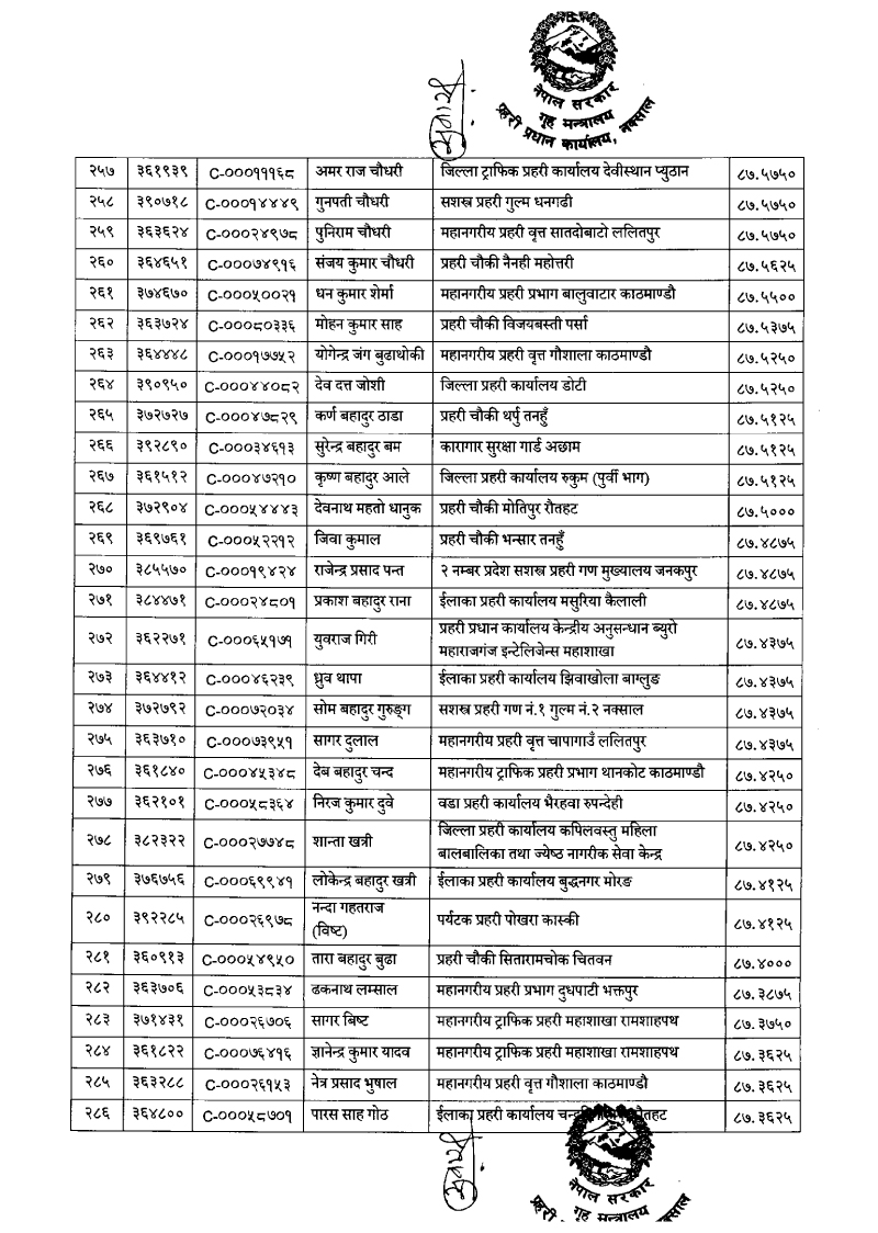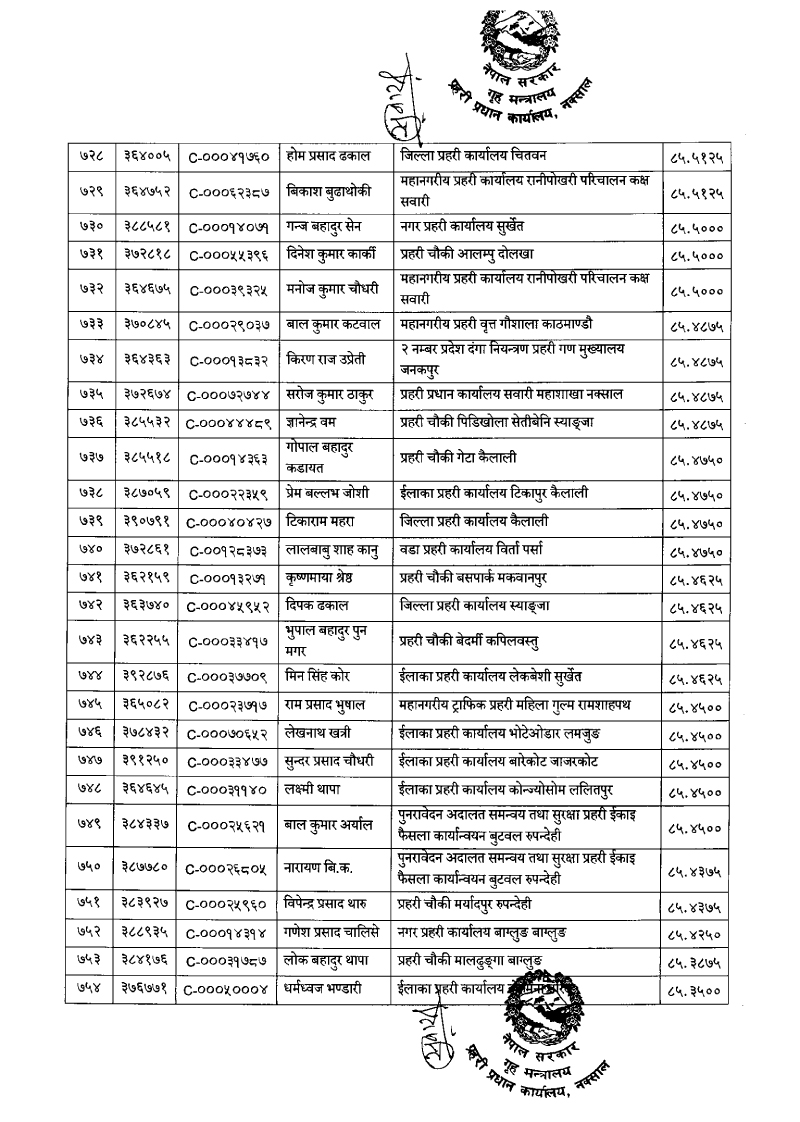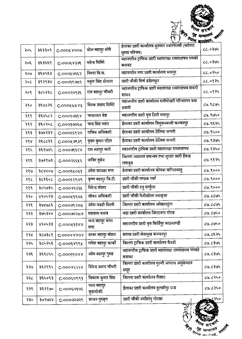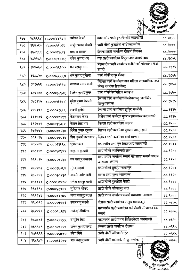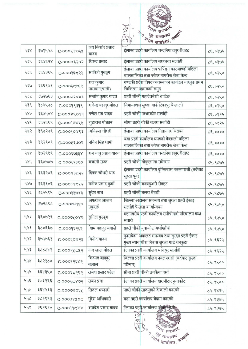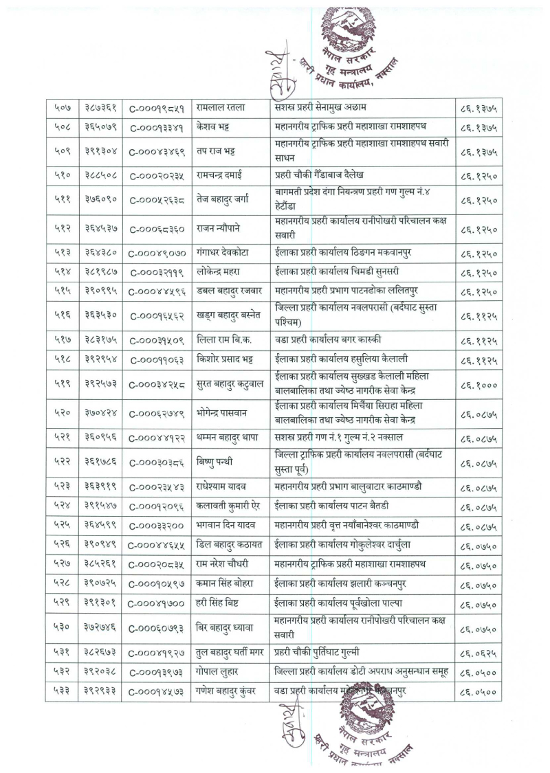 ७९६ प्रहरी जवान हवल्दारमा बढुवा (नाम)