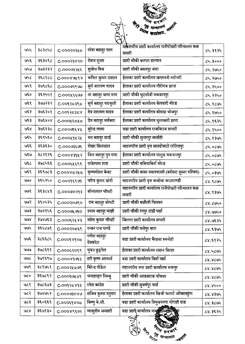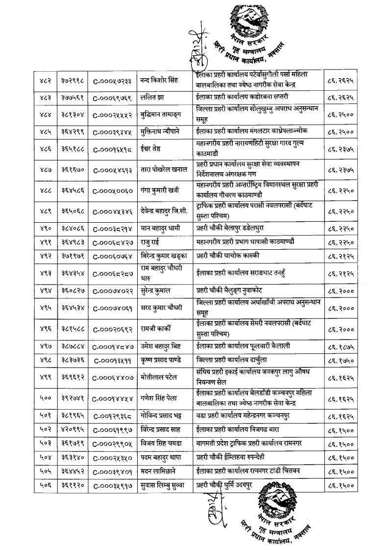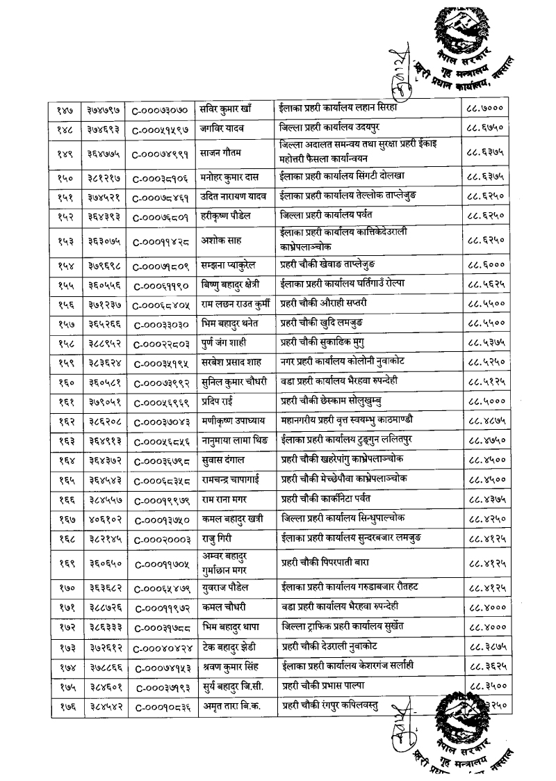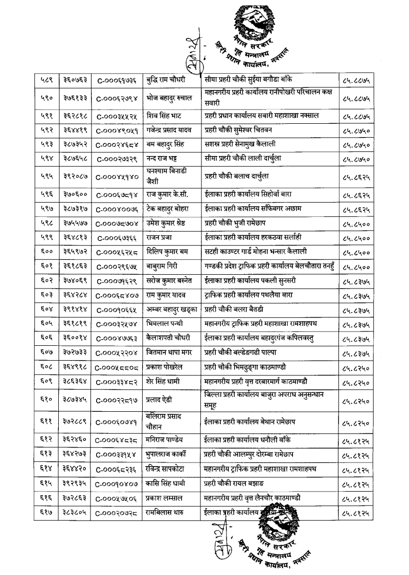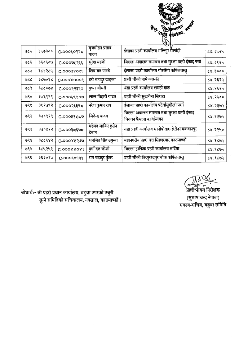 ७९६ प्रहरी जवान हवल्दारमा बढुवा (नाम)