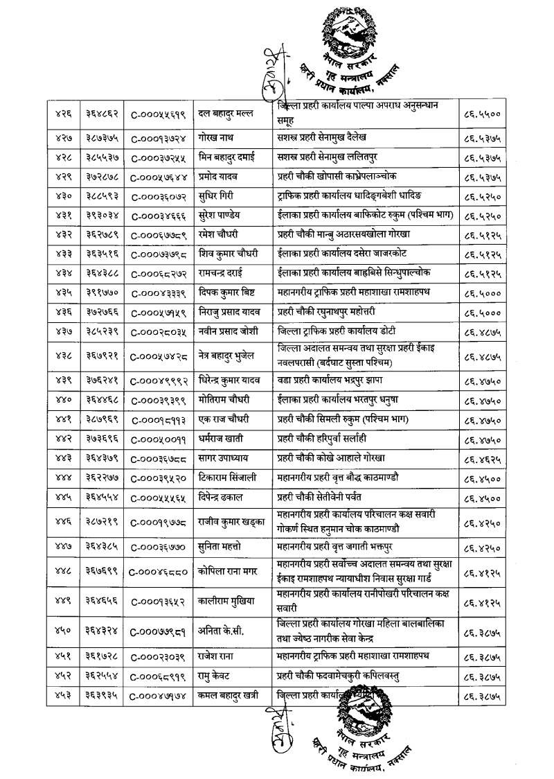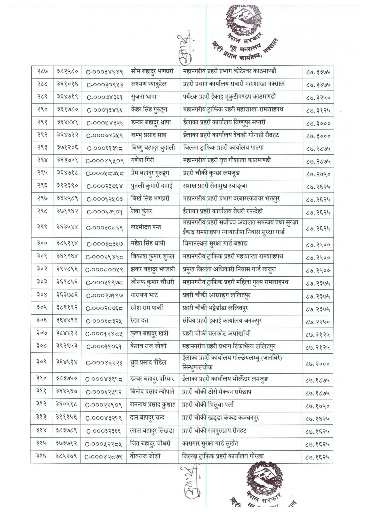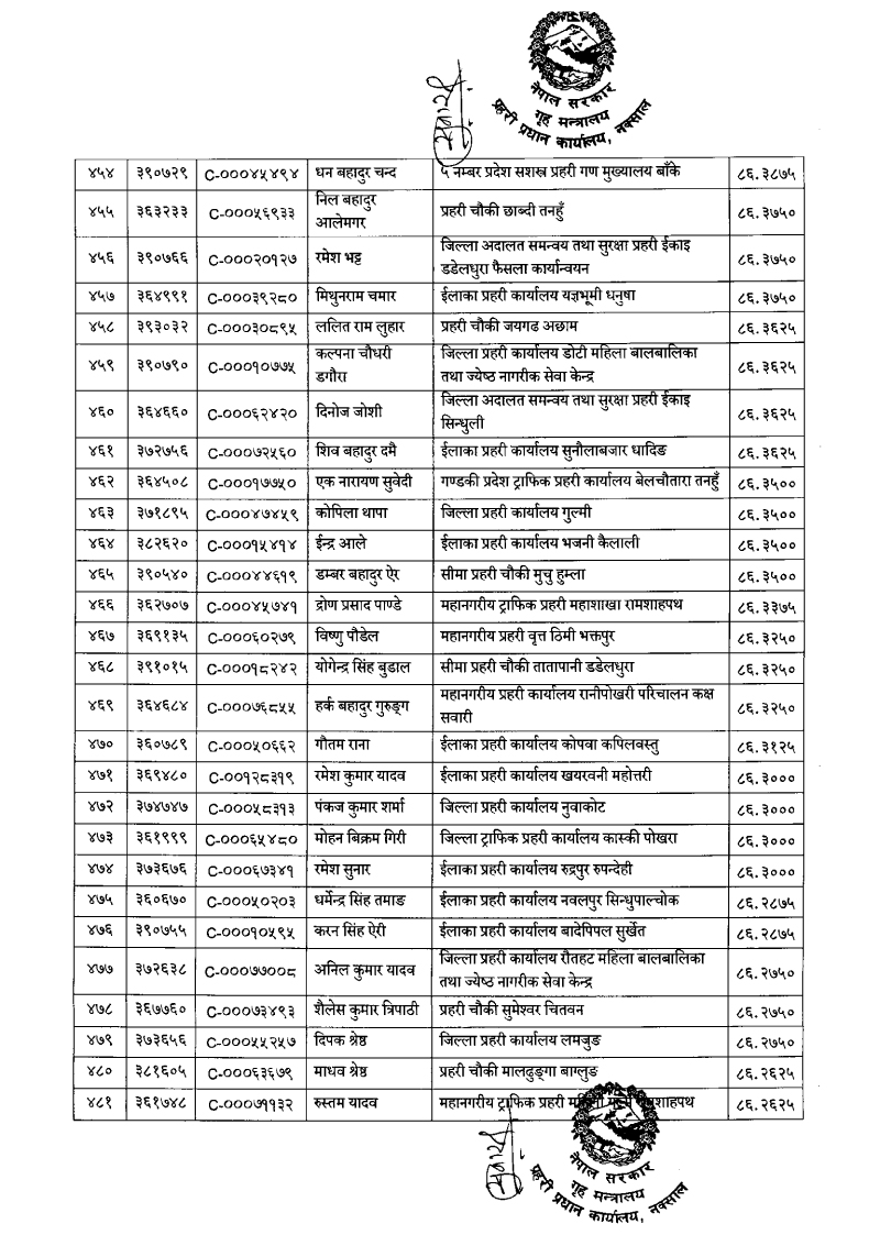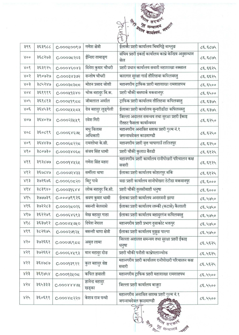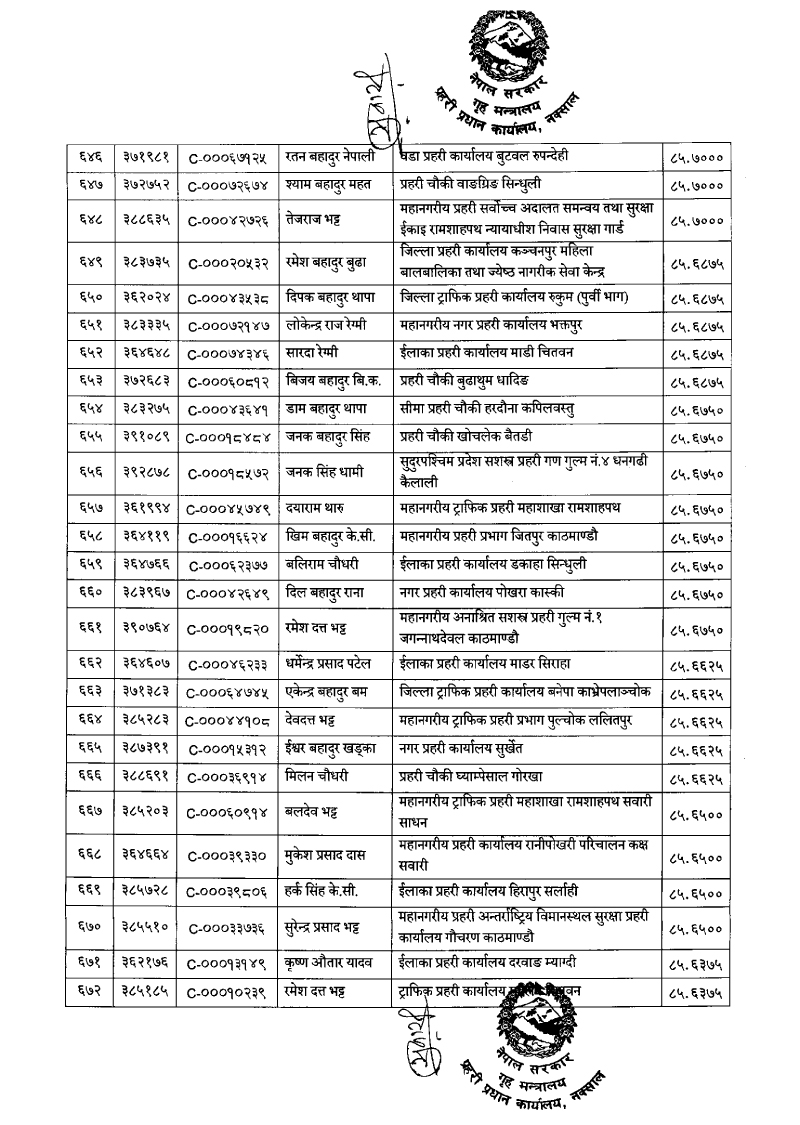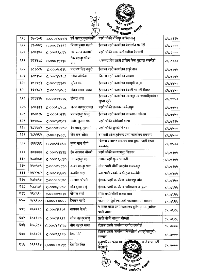 ७९६ प्रहरी जवान हवल्दारमा बढुवा (नाम)
