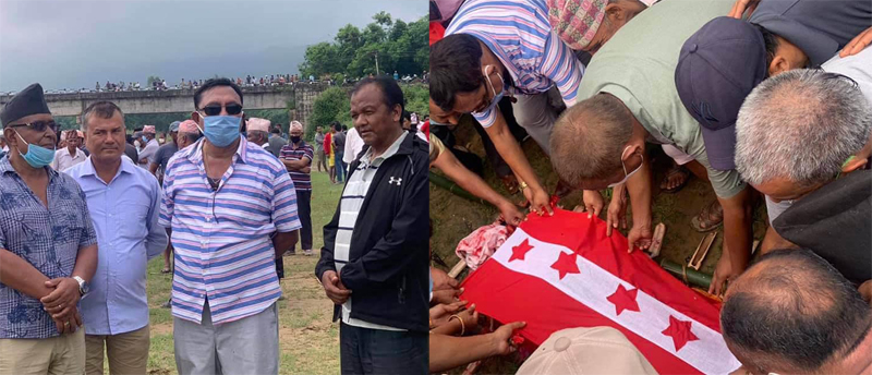 अन्तिम दाहासंस्कारका लागि कांग्रेसका उपसभापति कमानसिंह भारती, पूर्व सभापति वीरकेश्वरी गौतम, जिल्ला सचिव शंकरप्रसाद डाँगी, क्षेत्रीय सभापति भुपबहादुर डाँगी, भेषराज पाण्डे, जगतबहादुर खड्का, गिरीराज सुवेदी, जानकीलाल बस्नेत, भरत न्यौपाने, बद्री खड्का, कमलकिशोर घिमिरे, टेकबहादुर डाँगी, खिमबहादुर वलीलगायतको उपस्थिति रहेको थियो ।
