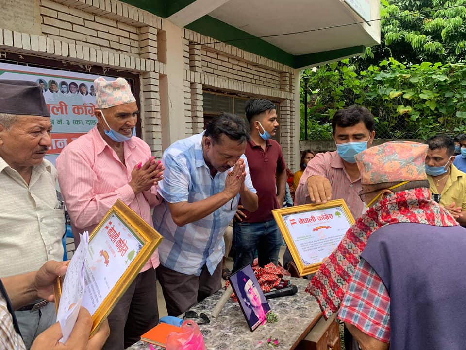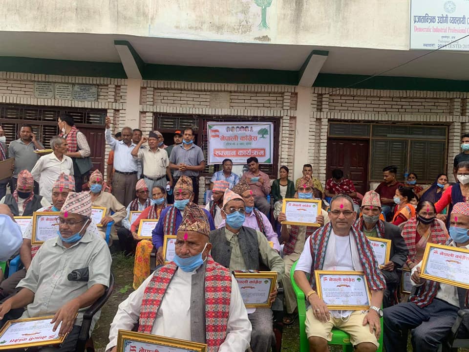 कार्यक्रममा कांग्रेसमा योगदान गर्ने दुई दर्जन स्थानीय नेताहरूलाई नेता गिरीले सम्मान गरेका थिए ।