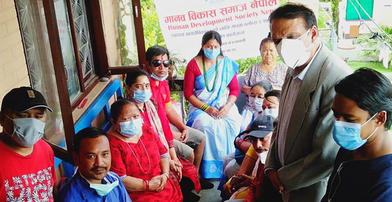 सोमबार बिहान डा.महतले टोखा नगरपालिका वडा नं.४ धापासीमा रहेको मानव विकास सेवा समाजमार्फत स्वास्थ्य स्वयंसेविकाहरूलाई स्वास्थ्य सामग्री वितरण गरेका हुन् । उनले मास्क, ग्लोब्स र थर्मलगन हस्तान्तरण गरेका थिए ।