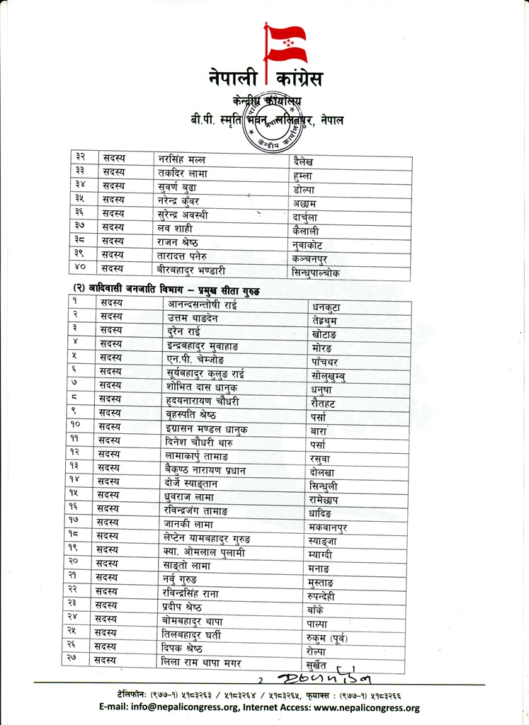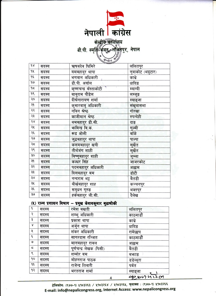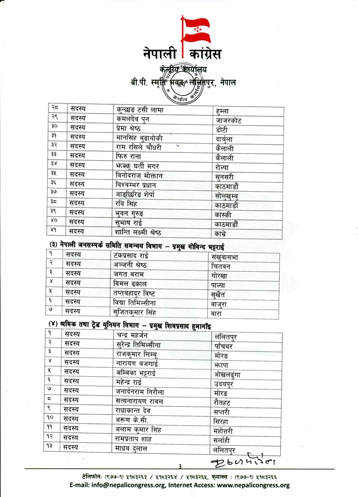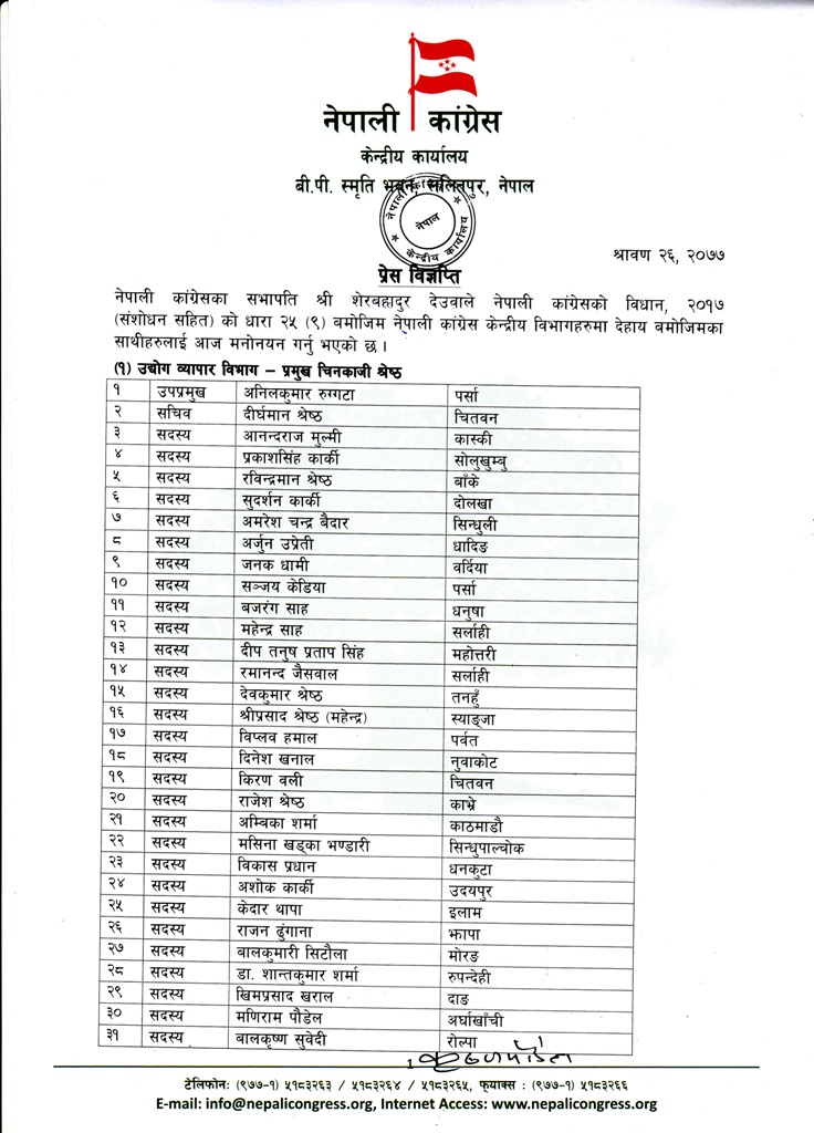 देउवाद्वारा कांग्रेसका थप पाँच वटा विभागहरू गठन, को–को परे ?