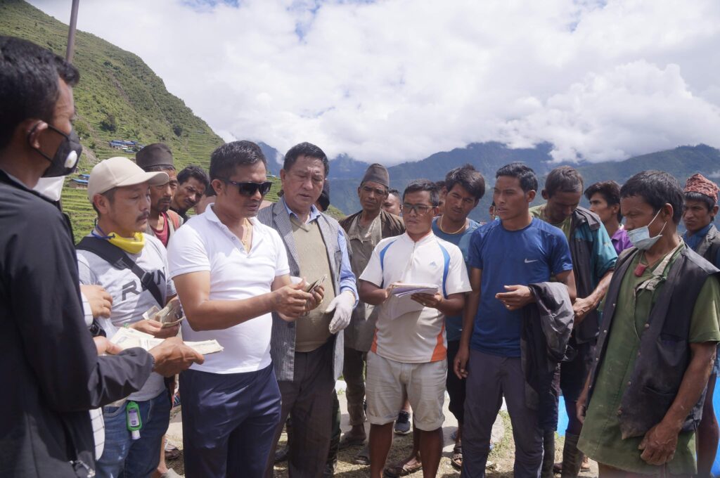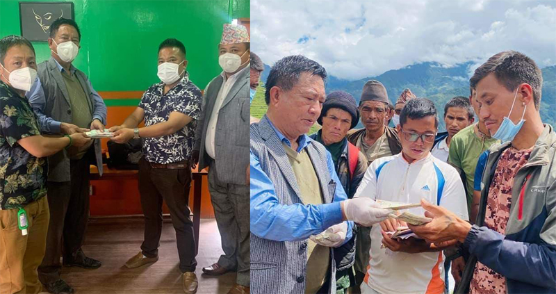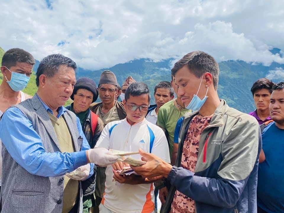 संकलित रकम जयबहादुर लामा, नेपाल तरुण दल जिल्ला कोषाध्यक्ष निमा शेर्पा, पूर्वक्षेत्रीय सभापति जंग लामा र तरुण दल क्षेत्रीय सभापति जयचन्द्रकुमार लामा लिदी पुगेर वितरण गरेका हुन् ।