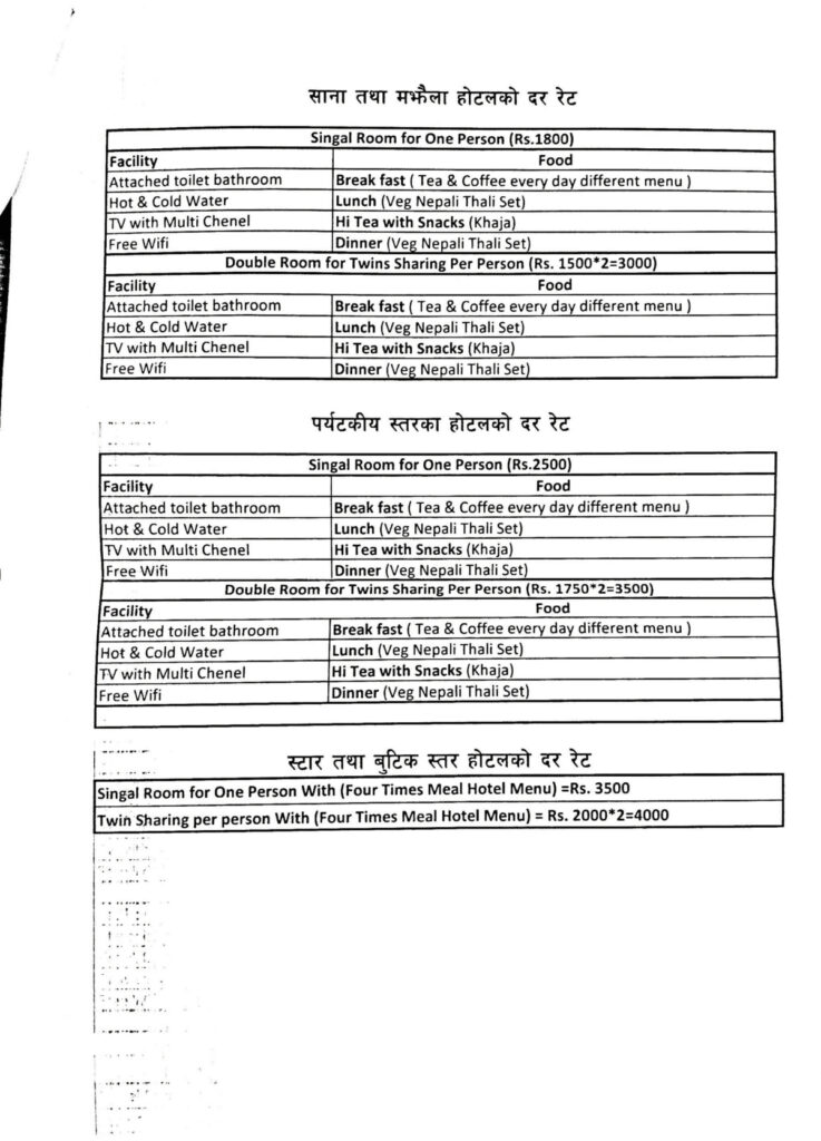 महासंघले साना तथा मझौला होटेलहरूमा न्युनतम १५ सय रुपियाँ तोकेको छ भने पर्यटकस्तरका होटेलमा २५ सय र बुटिक तथा स्टार लेबलका होटेलहरूमा न्युनतम ३५ सयदेखि दर रेट राखेको छ ।