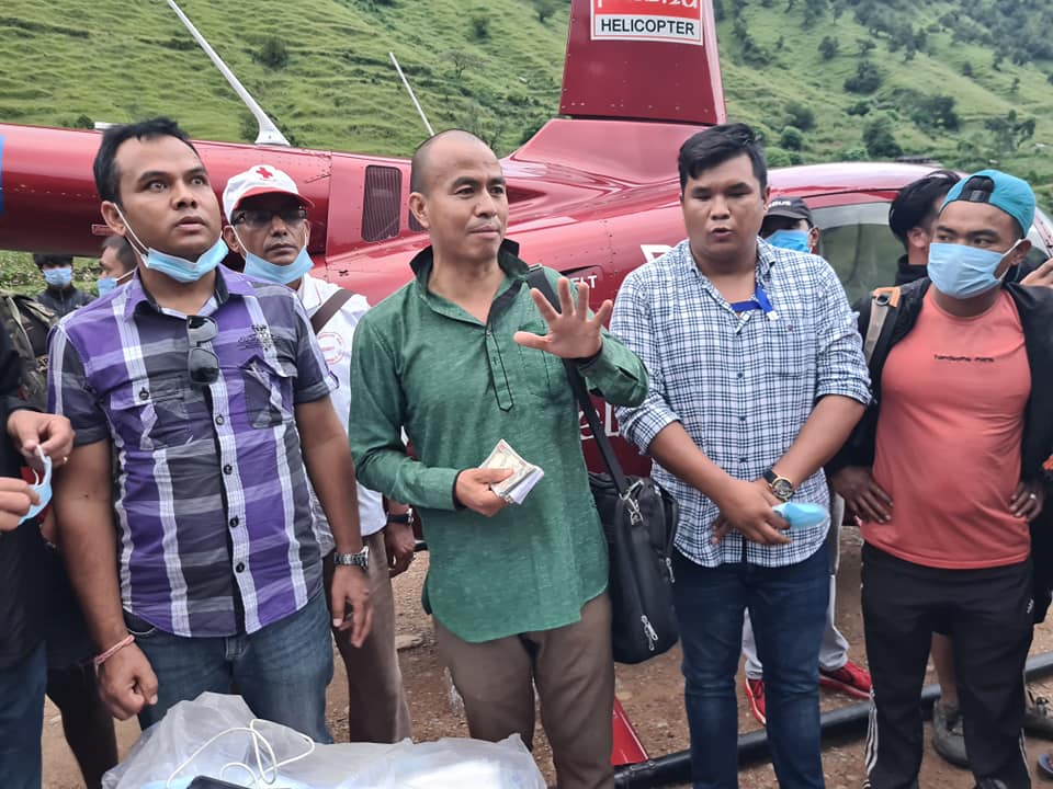 नेपाली कांग्रेसका क्षेत्रीय सभापति दोर्णकुमार कुँवर, प्रदेश सभाका उम्मेदवार जित शेरचन, ढोरपानटका मेयरका उम्मेदवार अर्जुन शेरचन र तरुण दल बागलुङका कोषाध्यक्ष देवेन्द्रकुमार घर्ती मगरले बिहीबार काठमाडौंबाट हेलिकप्टरमा राहतका सामग्री ल्याएर प्रभावित क्षेत्रमै आइ पीडितहरूलाई वितरण गरेका हुन् ।