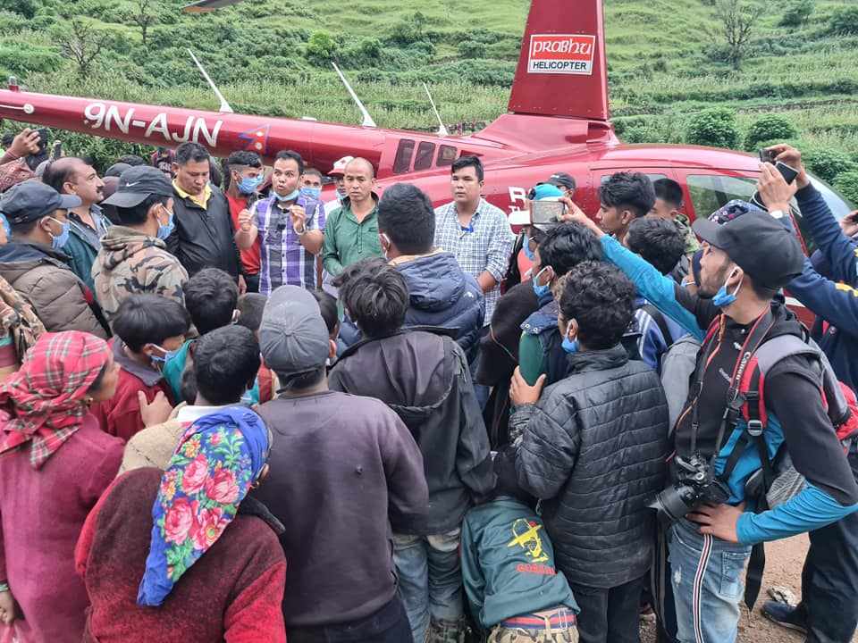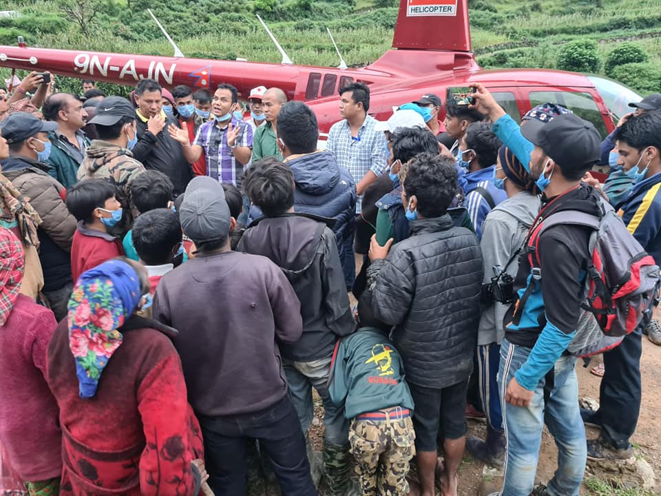 नेपाली कांग्रेसका नेताहरू चढेको हेलिकप्टर प्रभावित क्षेत्रमा पुगेर राहत विरतण गर्न सक्ने तर, गृहमन्त्री थापाको हेलिकप्टर प्रभावित क्षेत्रमा जान नसक्ने कारण के हो भनेर पीडितहरूले प्रश्न उठाएका छन् ।