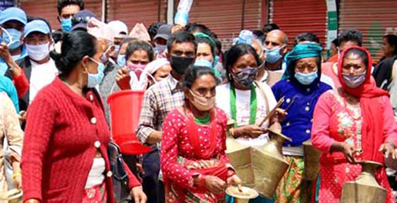 मन्त्री गुरुङको जिल्लामा रित्तो गाग्रीसहित प्रदर्शन, कांग्रेसले गरायो सचेत