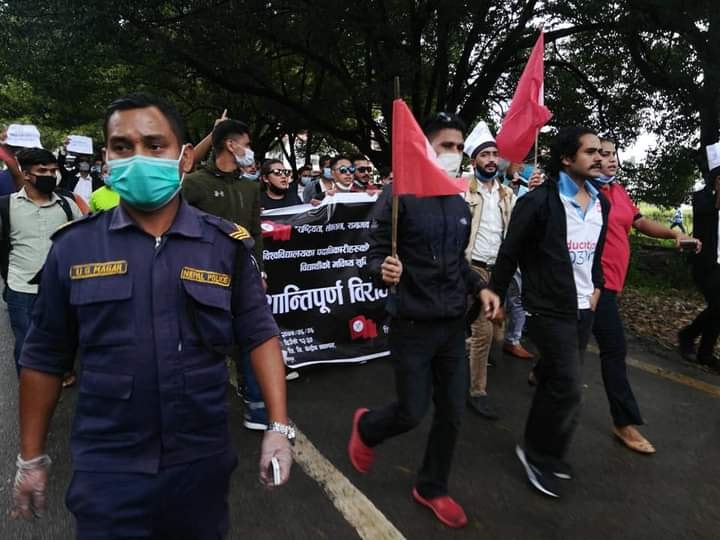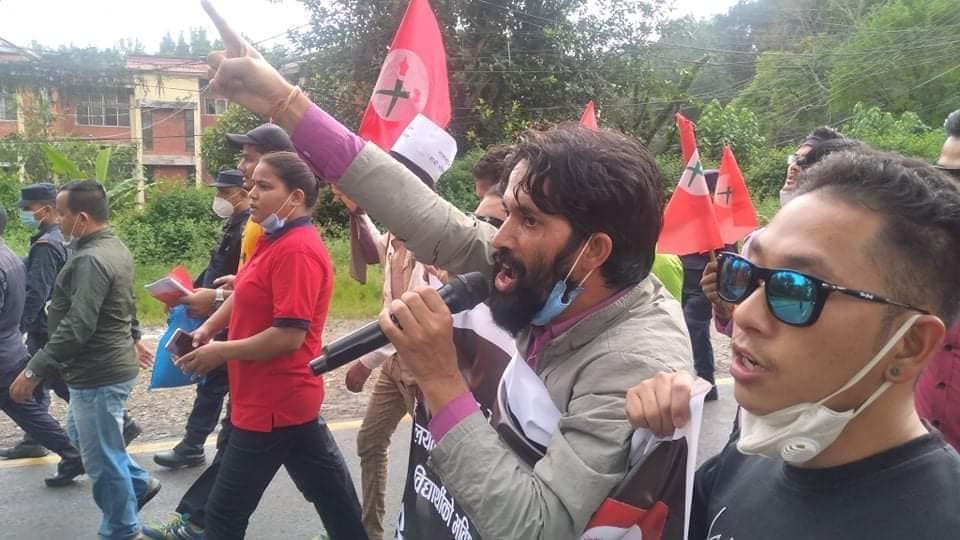 नेविसंघले छ महिना हुँदासमेत पठनपाठन र स्थगित परीक्षाबारे निकास ननिकालेको तथा नेविसंघ कार्यकर्तालाई झूटा मुद्दा लगाएको विरोधमा प्रदर्शन गर्दै आएको छ। मंगलबार विरोधमा उत्रिएका नेविसंघका नेता तथा कार्यकर्तालाई प्रहरीले पक्राउ गरेको थियो।