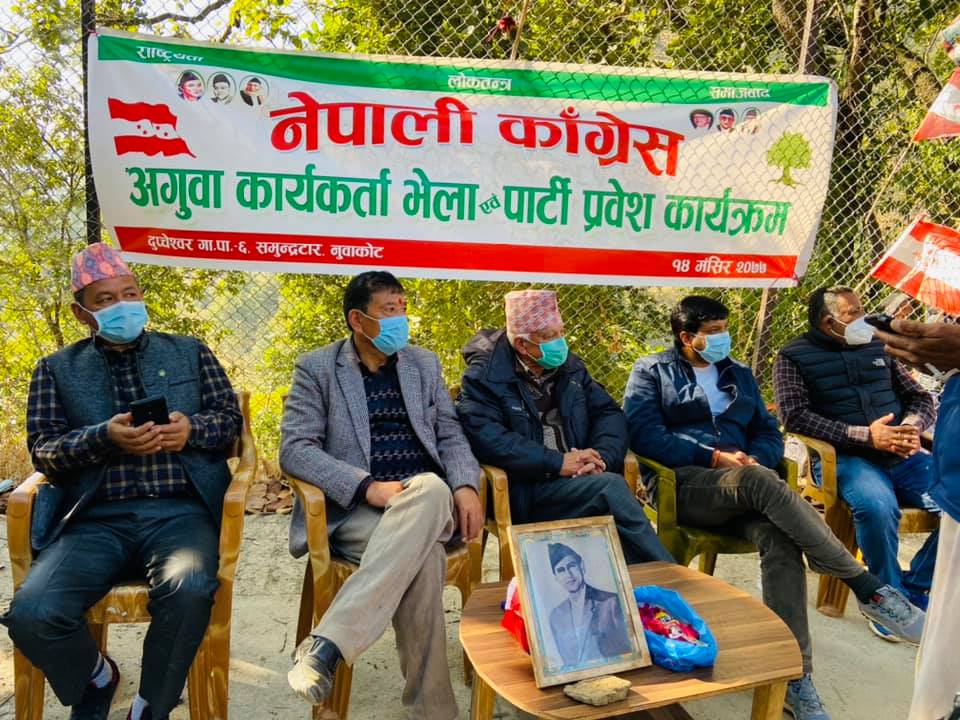 नेकपा नुवाकोटका प्रभावशाली युवा नेता लक्षण रुम्वा तामाङ, सुरज वाइबा, केशरबहादुर केसीलगायत करीव १६० जना युवा तथा वुद्विजीवीहरू कांग्रेसमा प्रवेश गरेका छन् ।