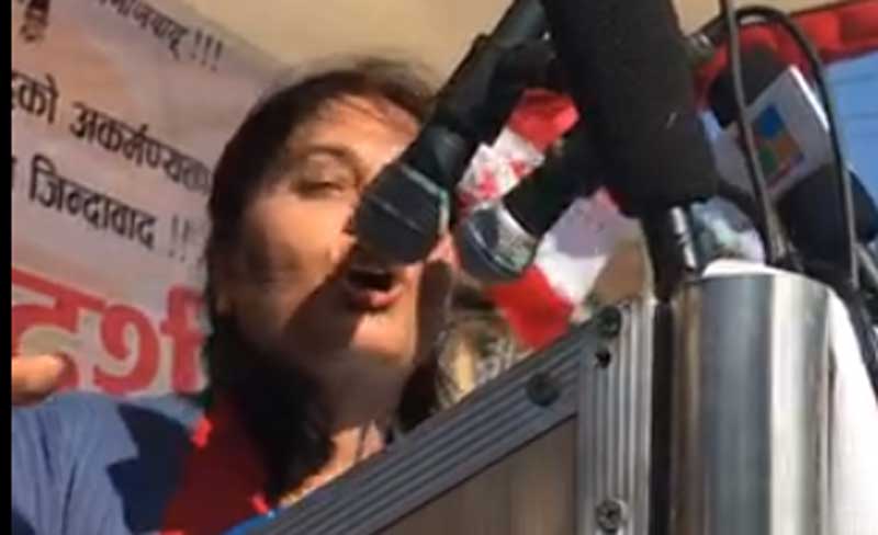 ‘संविधान कार्यान्वयन रोक्ने काम कम्युनिस्टले गरेका छन्’, उनले भनेकी छिन्, ‘यो सरकार भ्रष्टाचारीको सरकार हो । बलात्कारीको सरकार हो । गरिव मारा सरकार हो । किसान मारा सरकार हो ।’