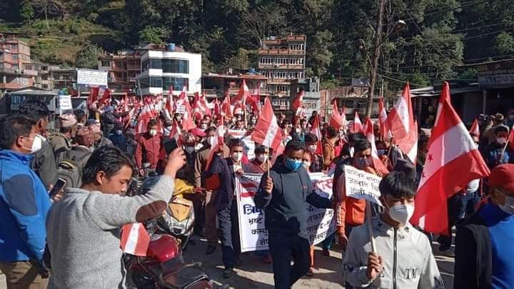 कांग्रेसका कार्यकर्ताद्वारा बाह्रबिसेमा कम्युनिस्ट सरकारको अन्त्यष्टि, प्रदर्शनमा बस्नेतद्वारा सम्बोधन