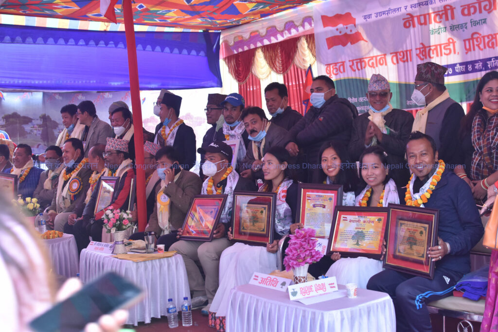 धरानमा कांग्रेस बस्नेतद्वारा सागका पदक विजेता खेलाडी र प्रशिक्षकलाई नगदसहित सम्मान