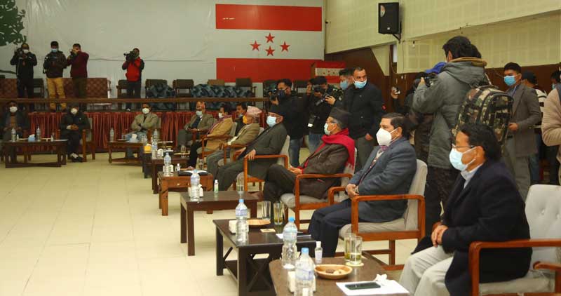 सत्तारुढ नेपाल कम्युनिष्ट पार्टी (नेकपा)बाट अध्यक्ष पुष्पकमल दाहाल, नेता झलनाथ खानाल, नेता माधवकुमार नेपाल, प्रवक्ता नारायणकाजी श्रेष्ठ, पम्फा भुसाल, वर्षामान पुन र कृष्णभक्त पोखरेलको बैठकमा उपस्थिति रहेको थियो ।