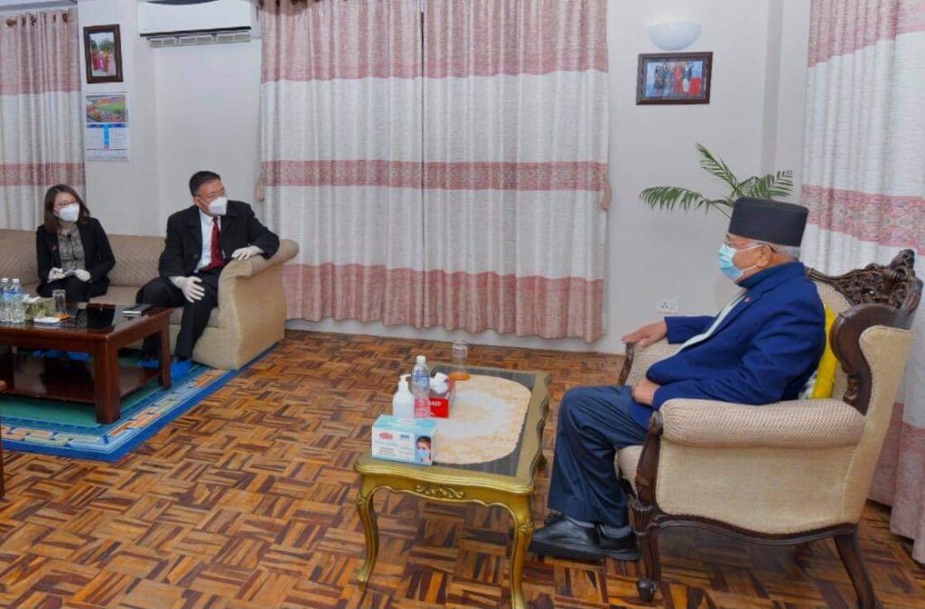 चिनियाँ टोलीले खुमलटारस्थित निवासमै पुगेर दाहालसँग भेट गरेको हो । अर्का अध्यक्ष नेपालसँग नयाँ बानेश्वरस्थित होटल एभरेष्टमा भेट गरेको जनाइएको छ ।