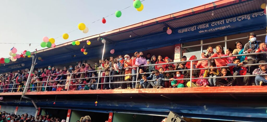 ललितपुरको गोदावरी नगरपालिकाको चापागाउँमा खुलेको चम्पापुर मिनी मार्केटको उद्घाटनमा शनिबार कांग्रेसका युवा नेता महर्जनले सबैको मन छोएका छन् । राष्ट्रिय खेलकुद परिषदका पूर्वकोषाध्यक्ष समेत रहेका कांग्रेसको खेलकुद विभागका सचिव महर्जनले नाम चलेका कलाकारहरूलाई स्टेजमा उतारेर स्थानीयको मन जित्न सफल भएका छन् ।