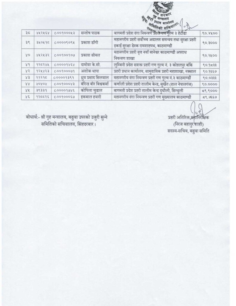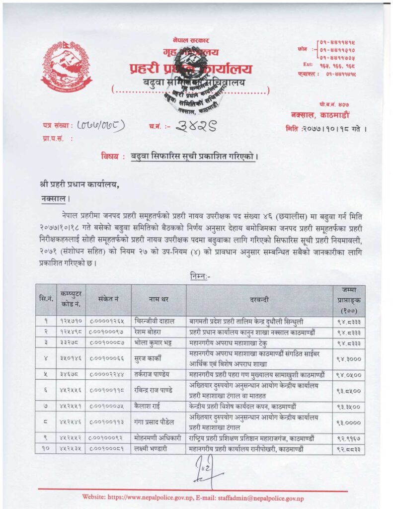 ४६ जना प्रहरी निरीक्षकहरू (ईन्स्पेक्टर)लाई डीएसपीमा बढुवाका लागि सिफारिस गरिएको विज्ञप्तिमा उल्लेख छ ।