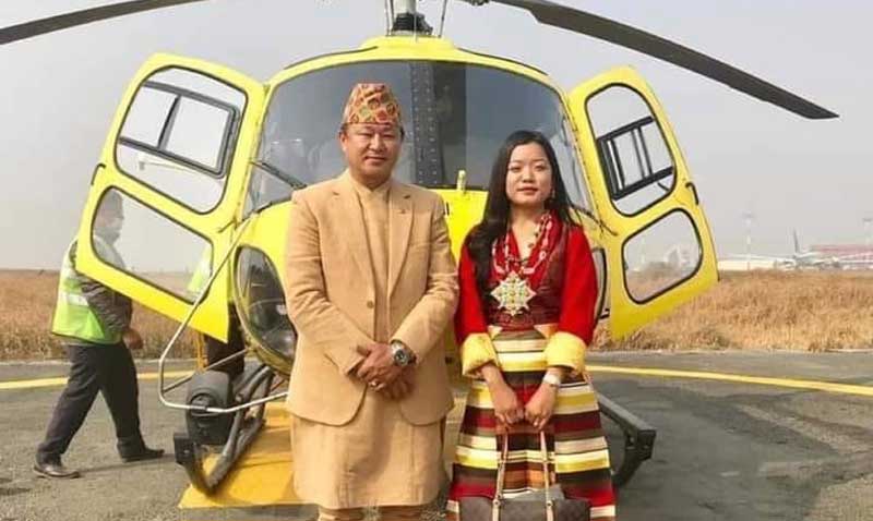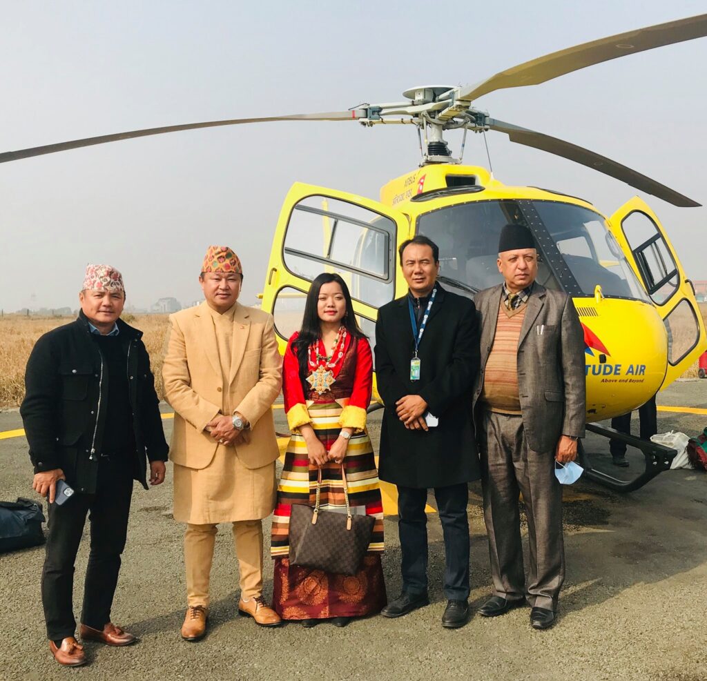कम्युनिस्ट मुख्यमन्त्री राईकी श्रीमती जाङ्ग्मु इन शेर्पाले फेसबुकमा फोटो शेयर गर्दै हेलिकप्टर चढेर माइती हिँडेको जानकारी गराएकी छन् ।