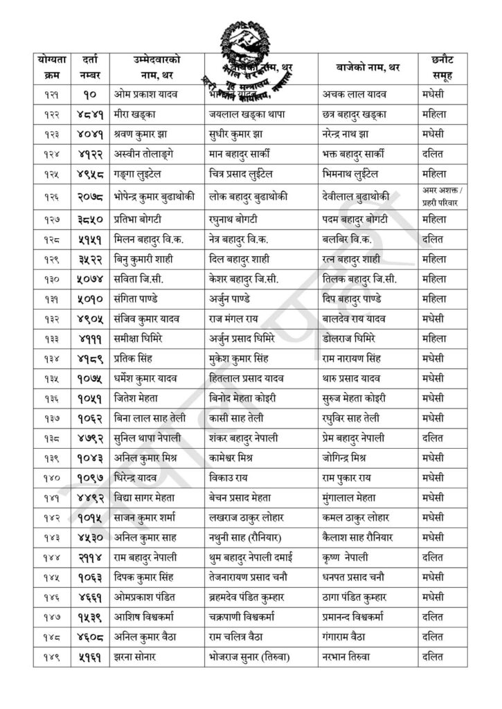 सबैभन्दा पुच्छार १४९औँ नम्बरमा झरना सोनार उत्तीर्ण भएकी छिन् ।