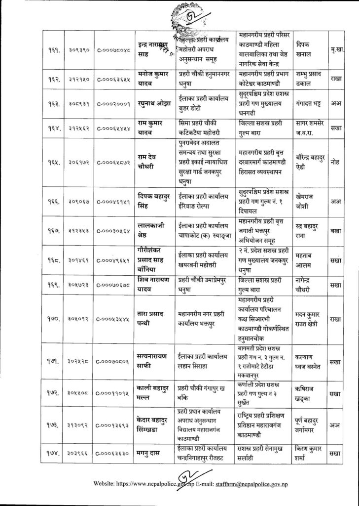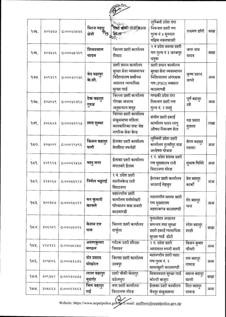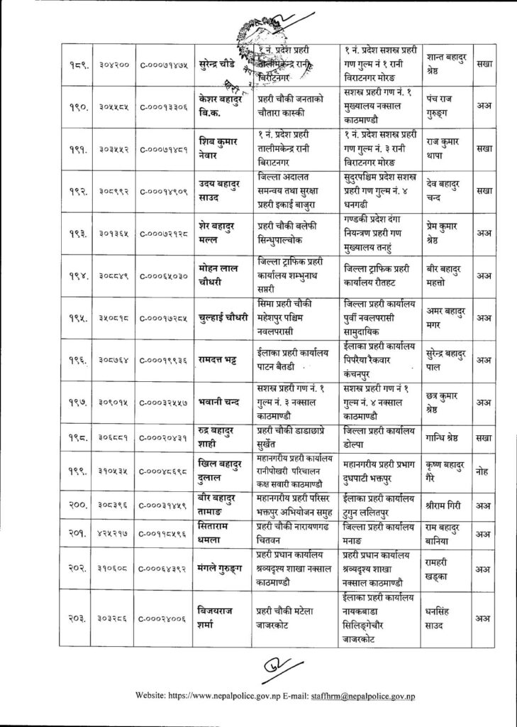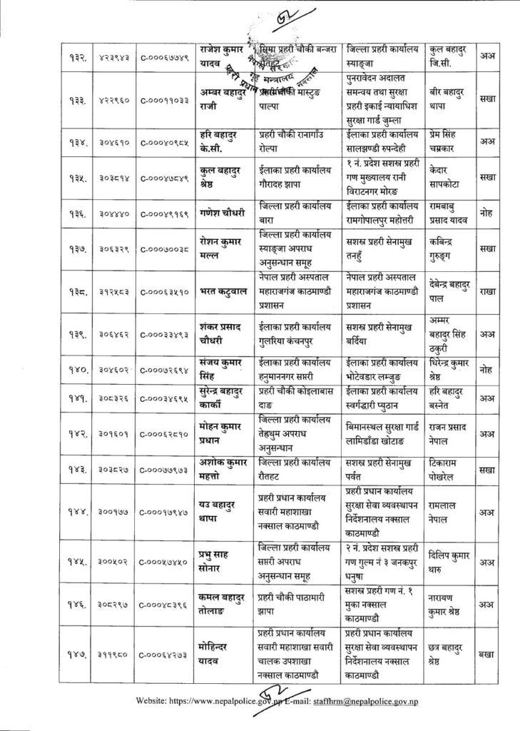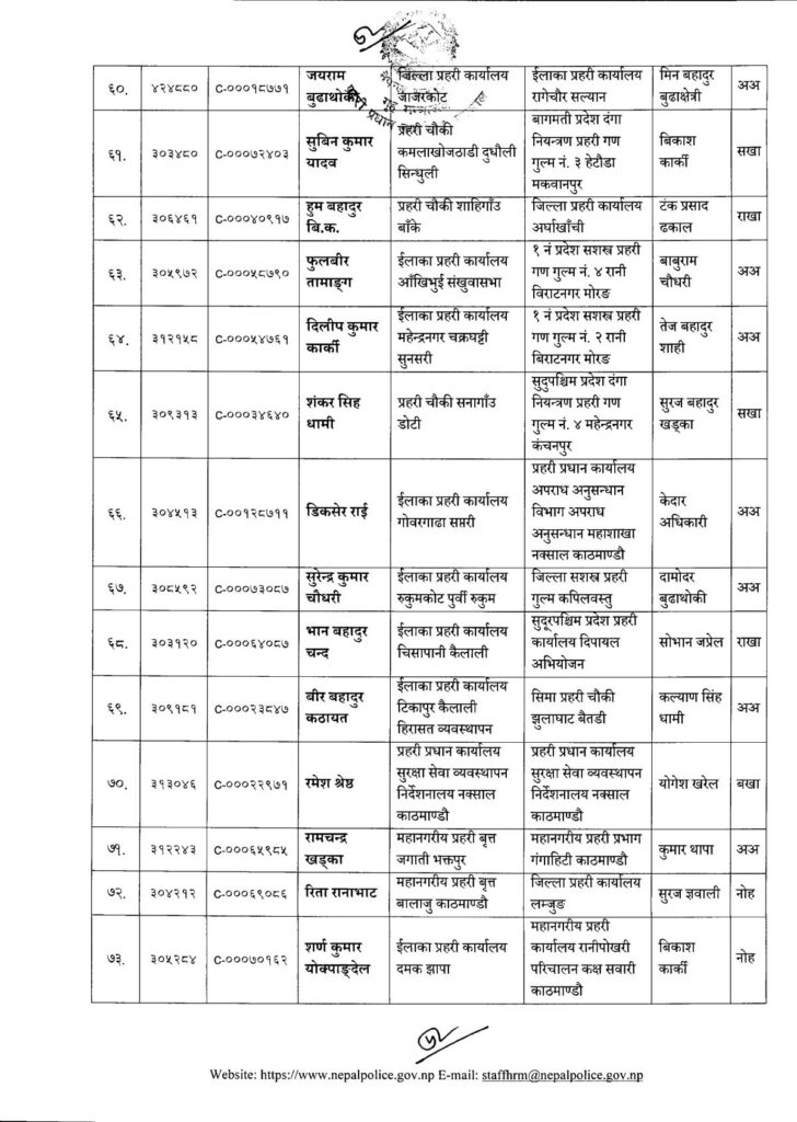 पहिलो नम्बरमा बढुवा हुनेमा रामकुमार बस्नेत रहेका छन् । बस्नेतलाई १ नं. प्रदेश दंगा नियन्त्रण प्रहरी गण मुख्यालय दुहवी सुनसरीमा पदस्थापना गरिएको छ ।