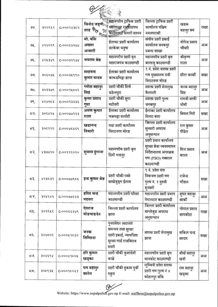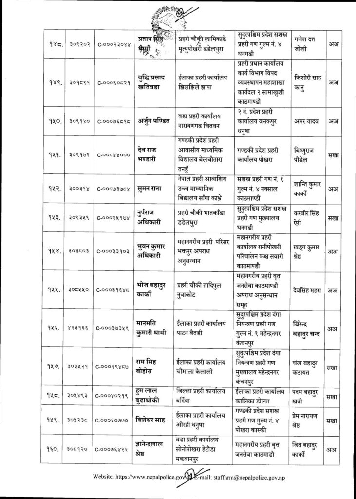 चैत १० गते बढुवा भएका जनपदतर्फका सईहरूलाई विभिन्न स्थानमा पदस्थापना गरिएको सूचनामा उल्लेख छ ।