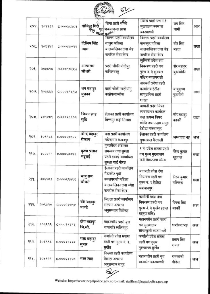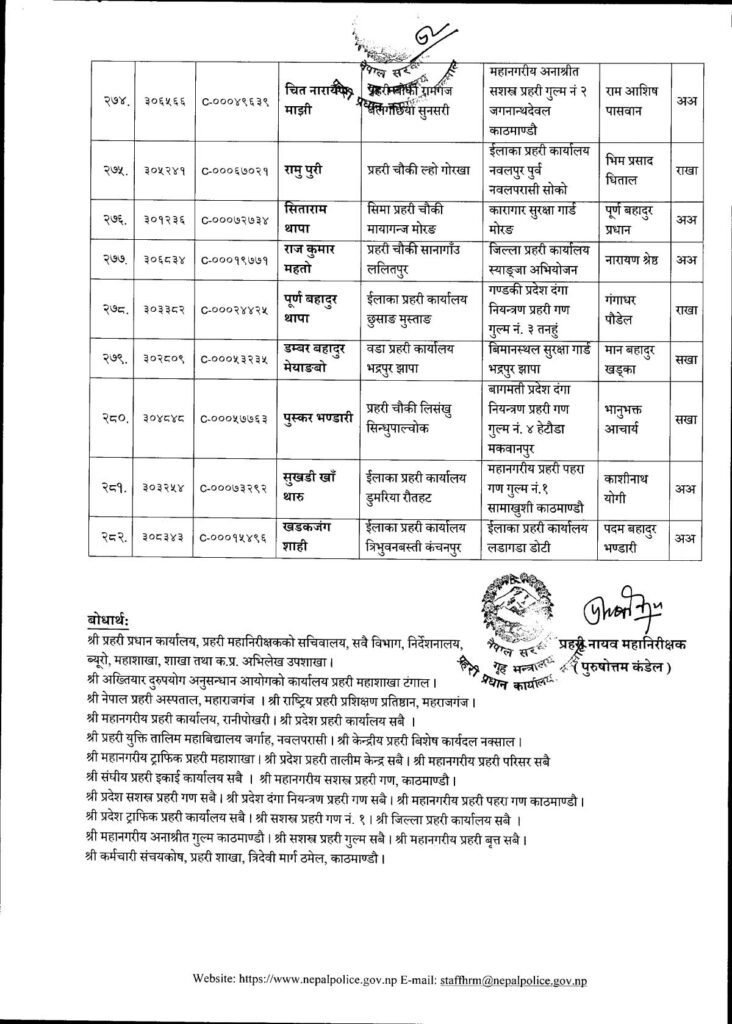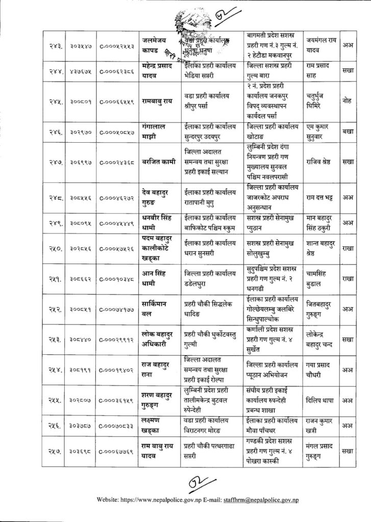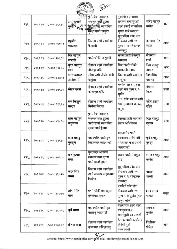 २८२ असईको सईमा बढवा, सबैको पदस्थापना (नामसहित)