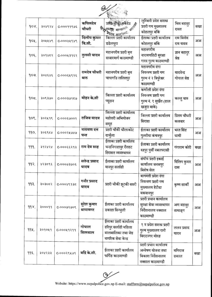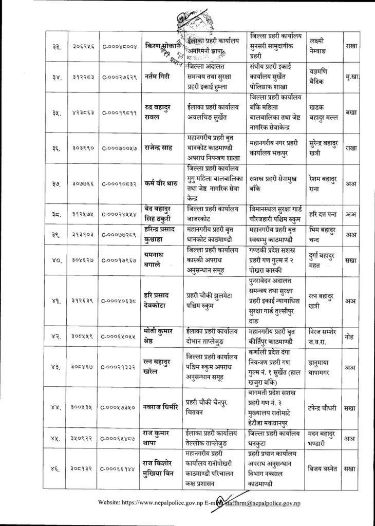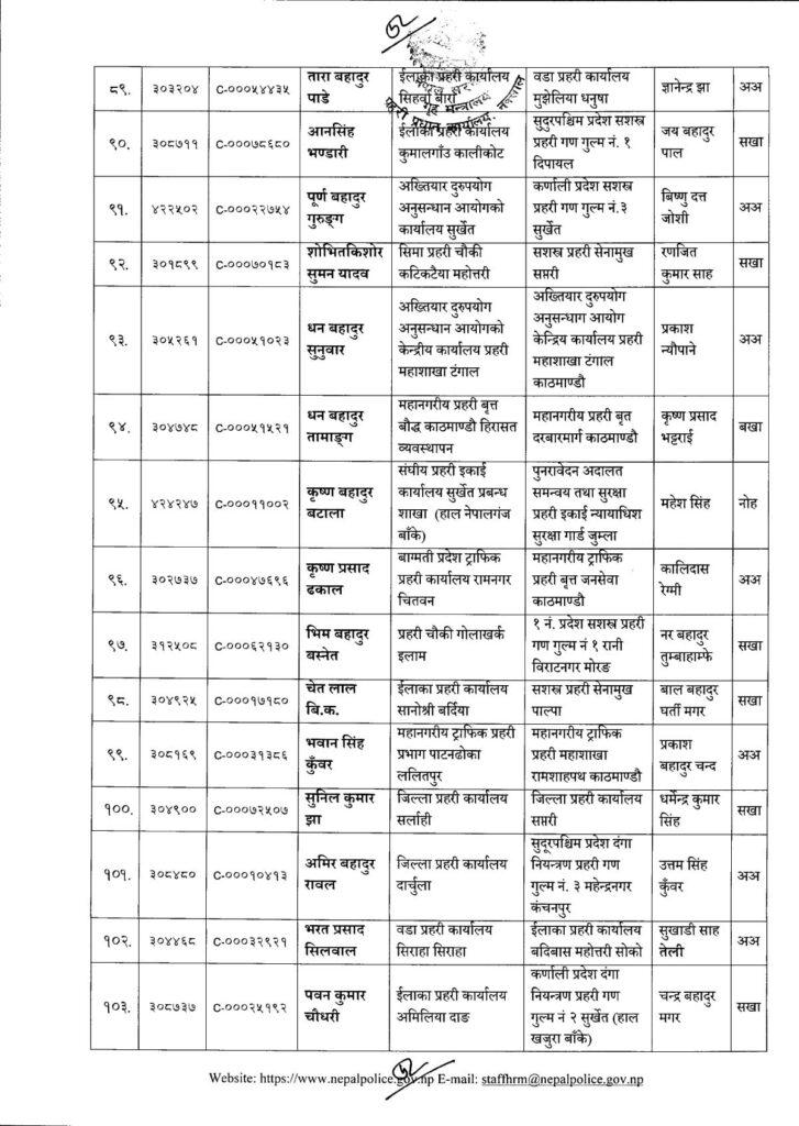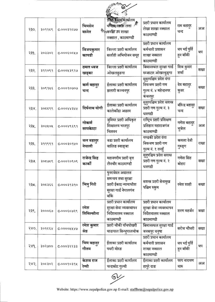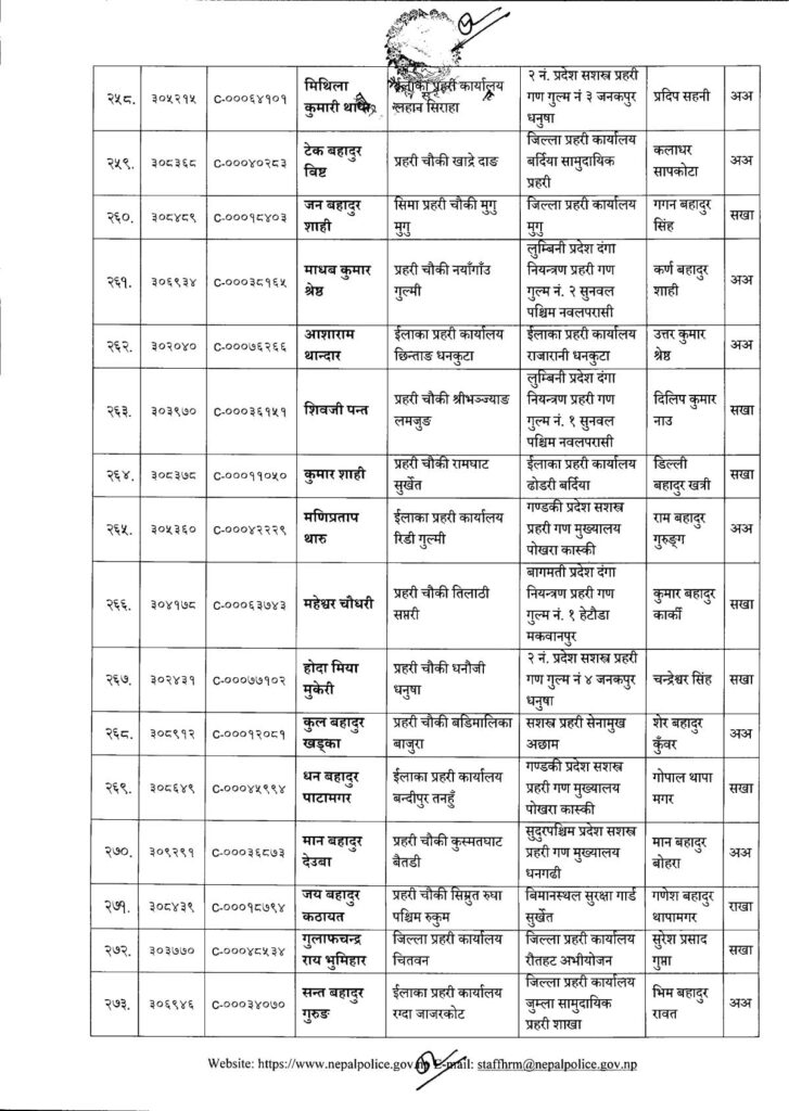 २८२ असईको सईमा बढवा, सबैको पदस्थापना (नामसहित)