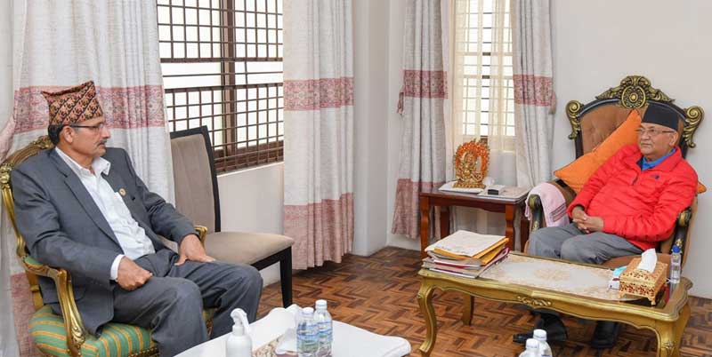 काठमाडौं । कम्युनिस्ट सरकारले संसदले विज्नेस नदिएका बेला प्रधानमन्त्री खड्गप्रसाद ओलीसँग सभामुख अग्निप्रसाद सापकोटाले भेटवार्ता गरेका छन् ।